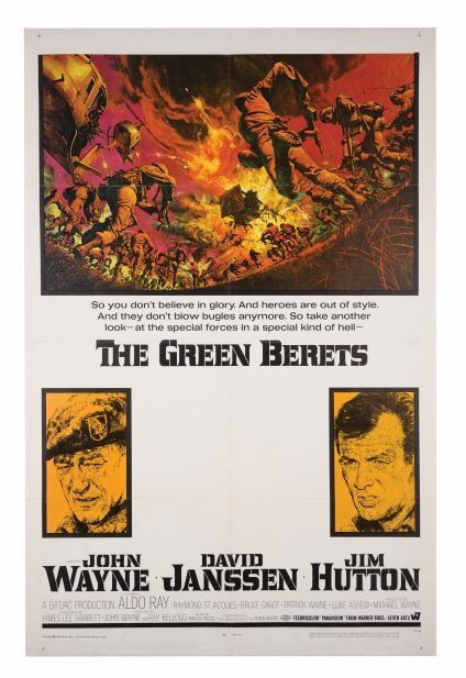 (Batjac/Warner Bros., 1968) An original release one sheet poster for "The Green Berets" starring John Wayne and Jim Hutton. Measuring 27"x41", the poster displays in very good condition, with wear to edges and corners, with a 6" tear and tape reinforcing along folds.
