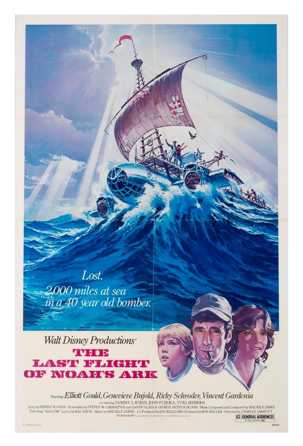 (Disney, 1980) A one-sheet for "The Last Flight of Noah's Ark," starring Elliott Gould. Measuring 27" x 41", the poster is in good condition with creases, wear along the original folds, light separation at the centerfolds, and discoloration from age.