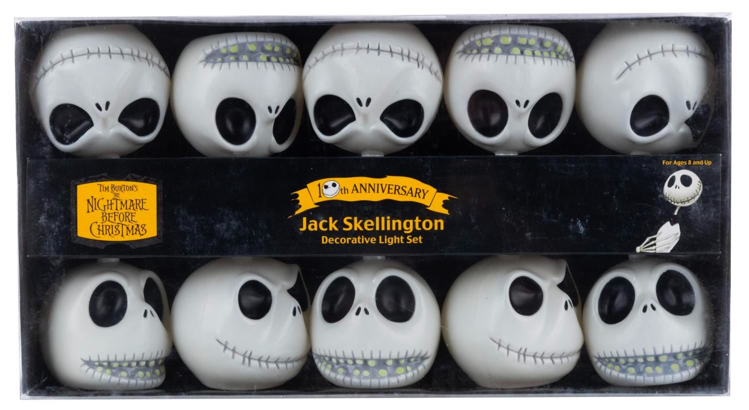 (NECA, 2003) A decorative light set featuring Jack Skellington, released for the 10th anniversary of "The Nightmare Before Christmas." Measuring 8" x 14" x 3" tall, in the box, the set is in fine, unopened condition with moderate wear to the box.