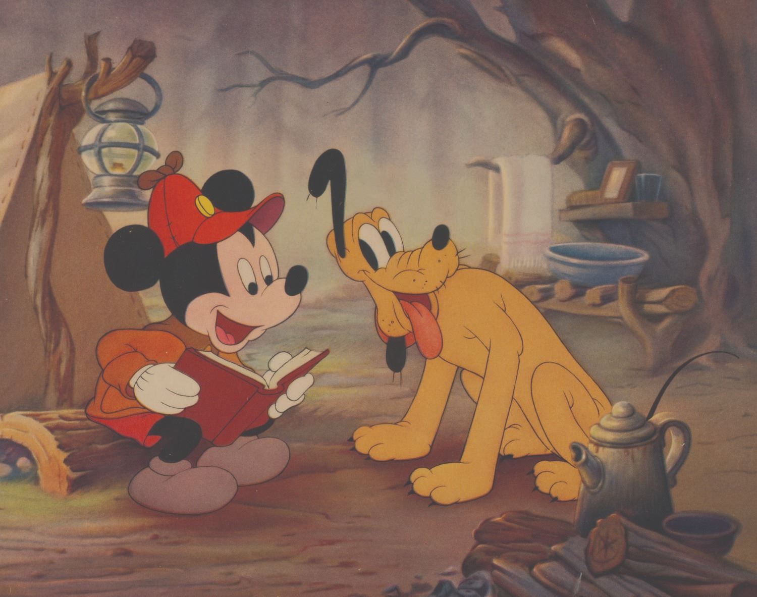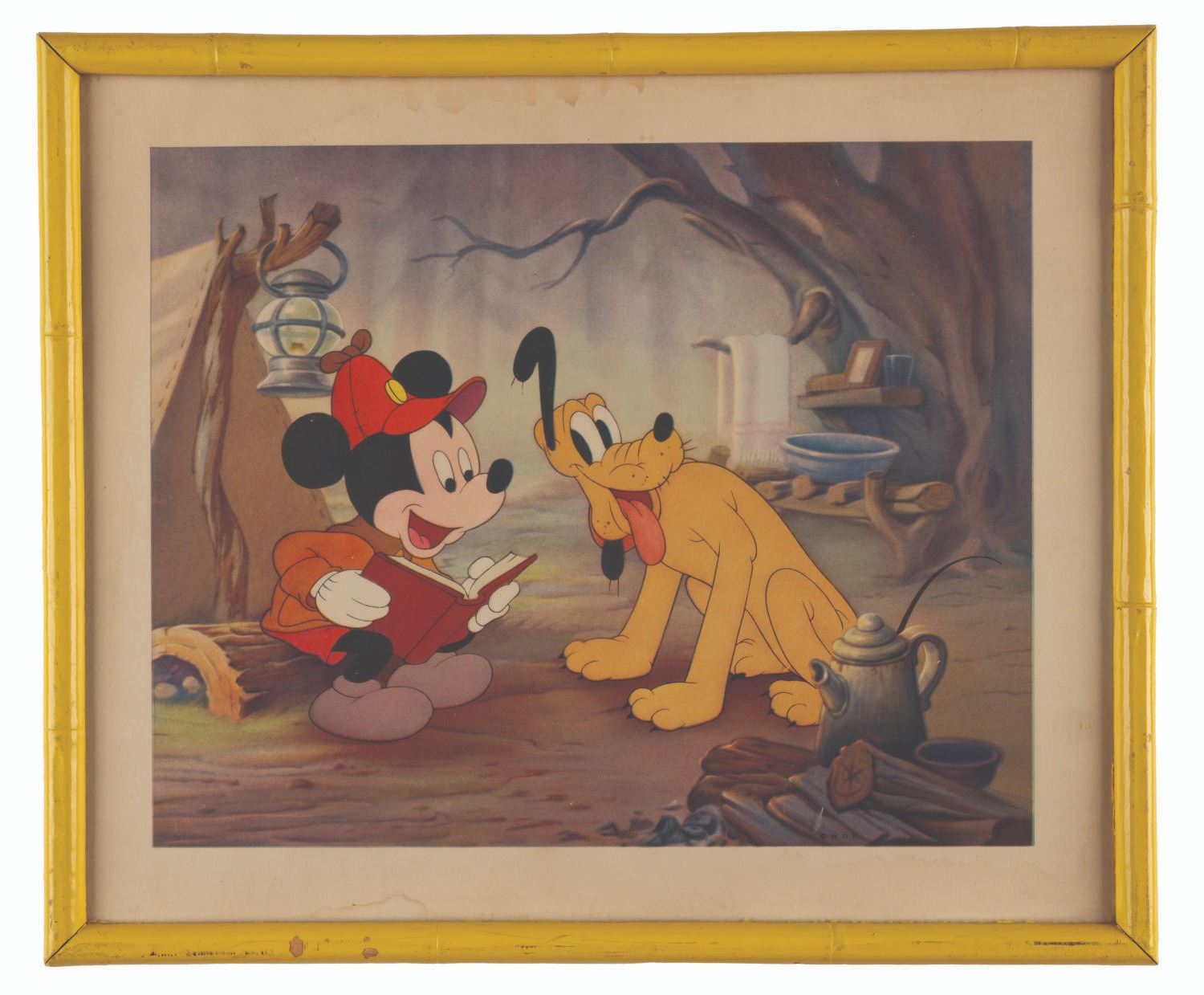 (Disney, 1950s-60s) A Disney Studio dye transfer print of a scene from the 1939 Mickey short "The Pointer.” Dye transfers such as these were given as gifts to visitors of the Studio and sold through the Art Corner at Disneyland. The print has an image size of 10” x 12” in an 11” x 12.25” frame. The print is in very good condition with some color fading from age and scuffs and chips to the frame.