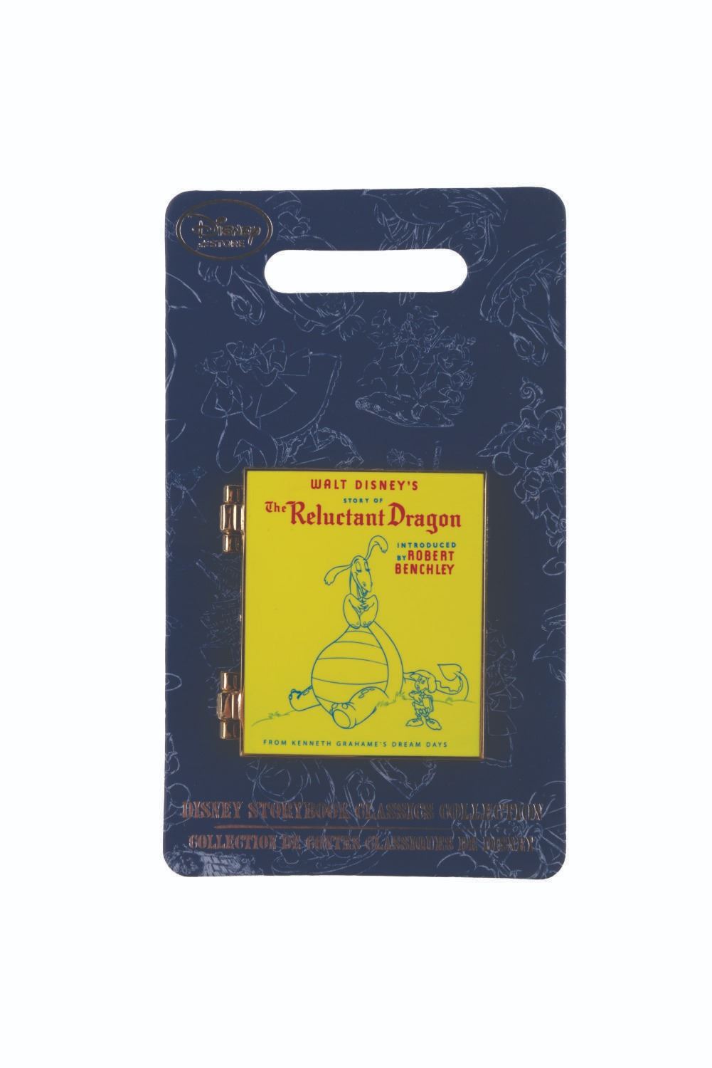 (Disney, 2017) A “The Reluctant Dragon” hinged book pin, released in the Disney Storybook Pin Collection in March 2017. Measuring 1.5” x 1.75” the LE 1100 pin is in fine condition on the original card.