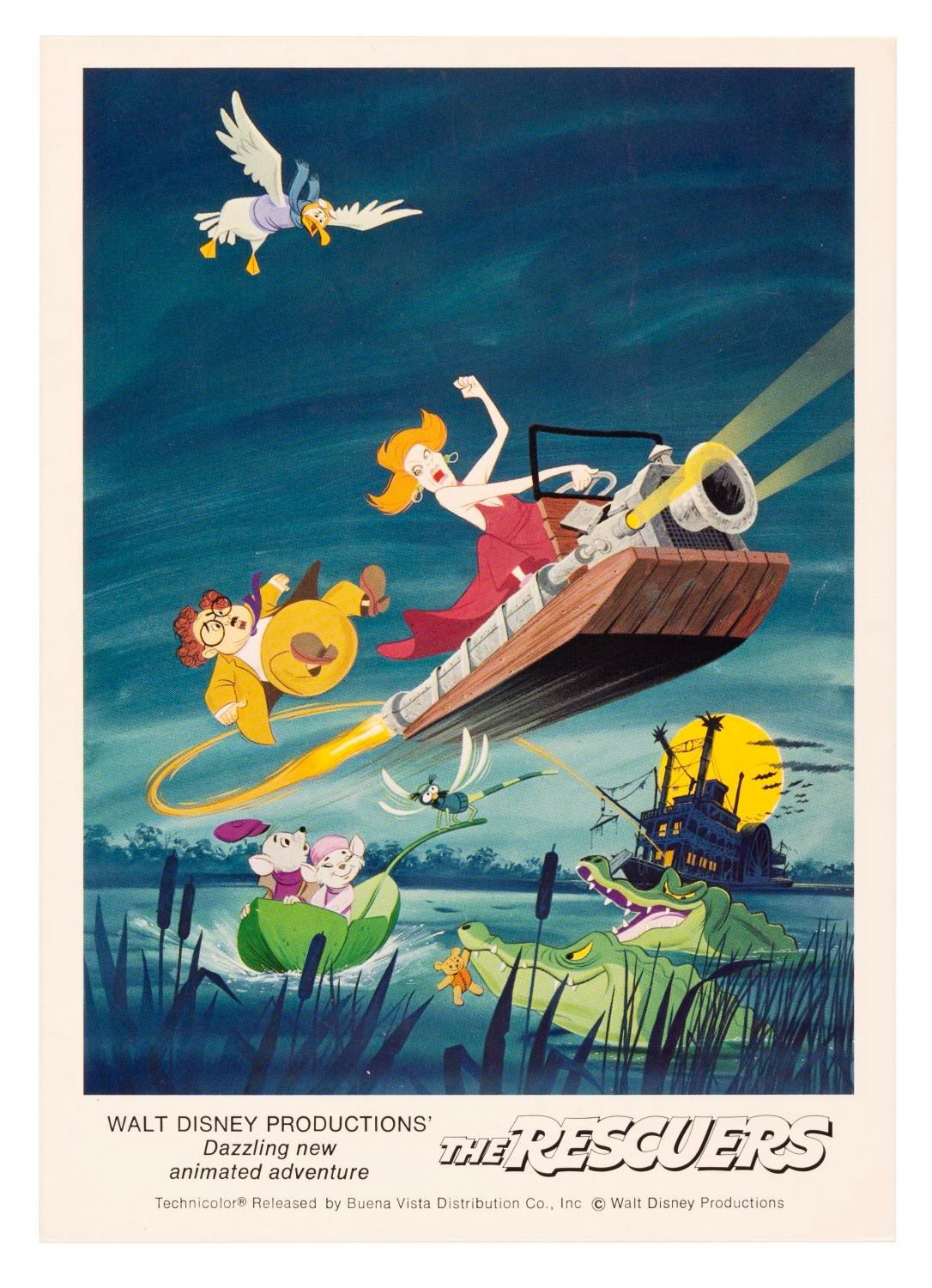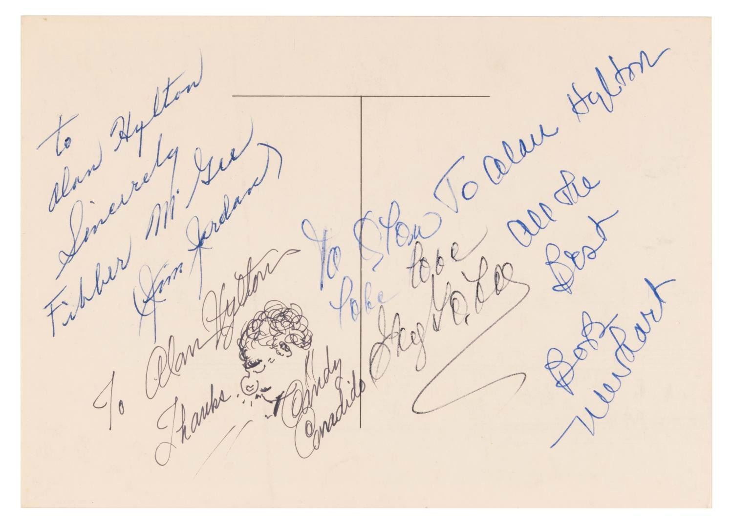 (Disney, 1977) A “The Rescuers” postcard hand-signed on the reverse with personalized messages by the actors Bob Newhart, Eva Gabor, Jim Jordan, and Candy Candido to super-collector Alan Hylton. Measuring 5” x 7”, the postcard is in good condition with light creases and scratches.