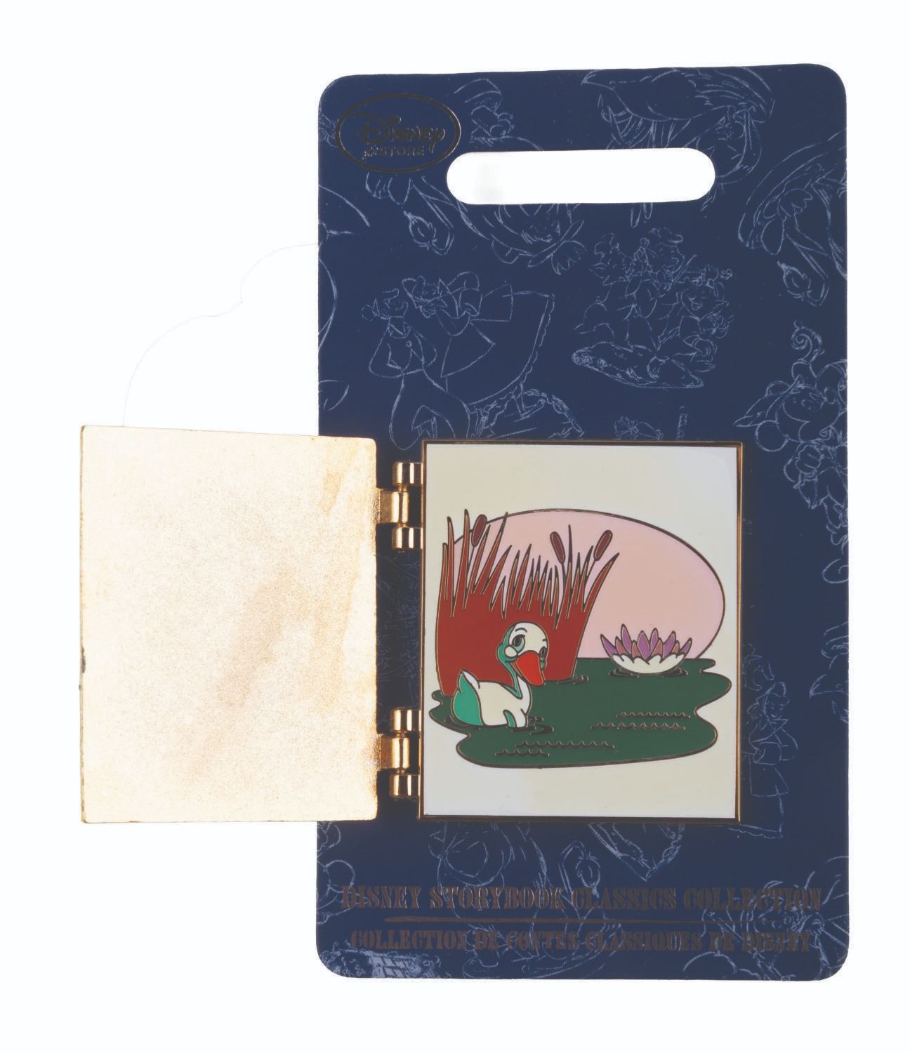 (Disney, 2017) A “The Ugly Duckling” hinged book pin, released in the Disney Storybook Pin Collection in February 2017. Measuring 1.5” x 1.75” the LE 1100 pin is in fine condition on the original card.