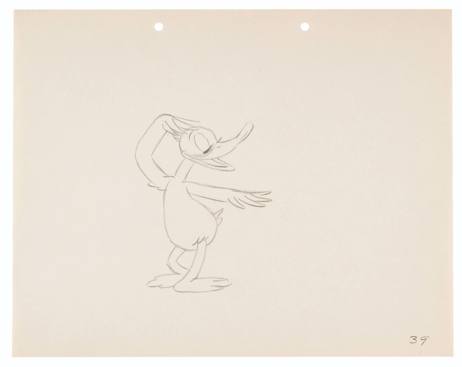 (Schlesinger, 1943) An original production drawing of Daffy Duck from “The Wise Quacking Duck,” directed by Bob Clampett. With an image size of 5” x 4” on 9.5” x 12” animation paper, the drawing is in fine condition.
