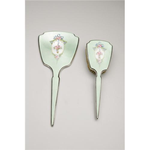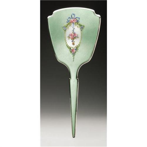 A Thomae Co Silver & Enamel Hand Mirror & Brush An American Silver and Enamel Hand Mirror and Brush