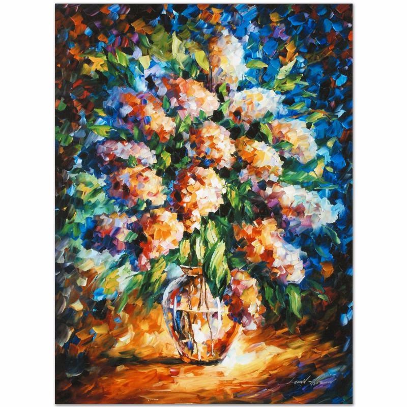 Leonid Afremov's masterful use of color and texture make his paintings unique collectibles that are sure to brighten any wall. "A Thoughtful Gift" is a limited edition giclee on stretched canvas, numbered and bears Afremov's authorized signature. This piece comes gallery wrapped and ready to hang. Includes Certificate of Authenticity! Measures approx. 18" x 24" (image).