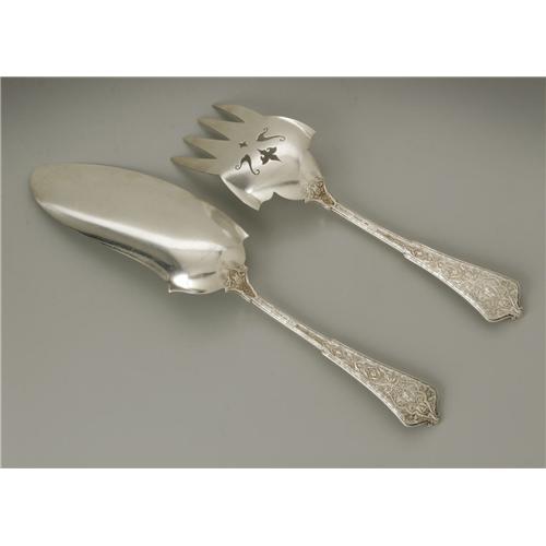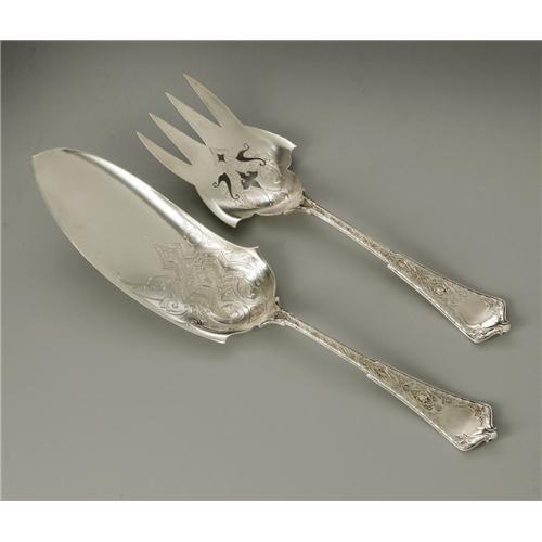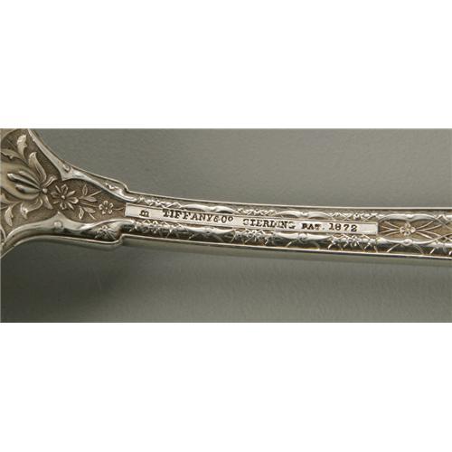 <B>An American Silver Serving Fork</B></I><BR><B>Tiffany & Co., New York, NY, 1872</B></I><BR><BR>The 'Persian' pattern serving fork with an engraved pattern to the pierced bowl, marked on the reverse of the handle <I>m TIFFANY & CO. STERLING PAT. 1872</B></I><BR>9.7in. long