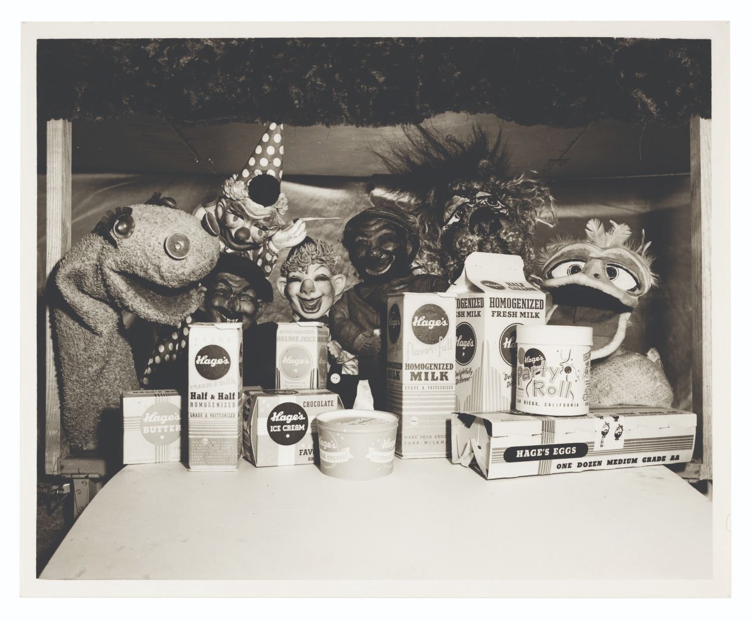 (Clampett, 1949-54) A “Time For Beany” promotional photo of Beany and friends with products from Hage’s dairy in San Diego. Measuring 8” x 10”, the photo is in very good condition with light edge wear.