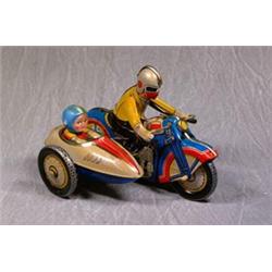 A Tin Plate Clockwork Motorcycle and Side Car by BSH. In Good Order....