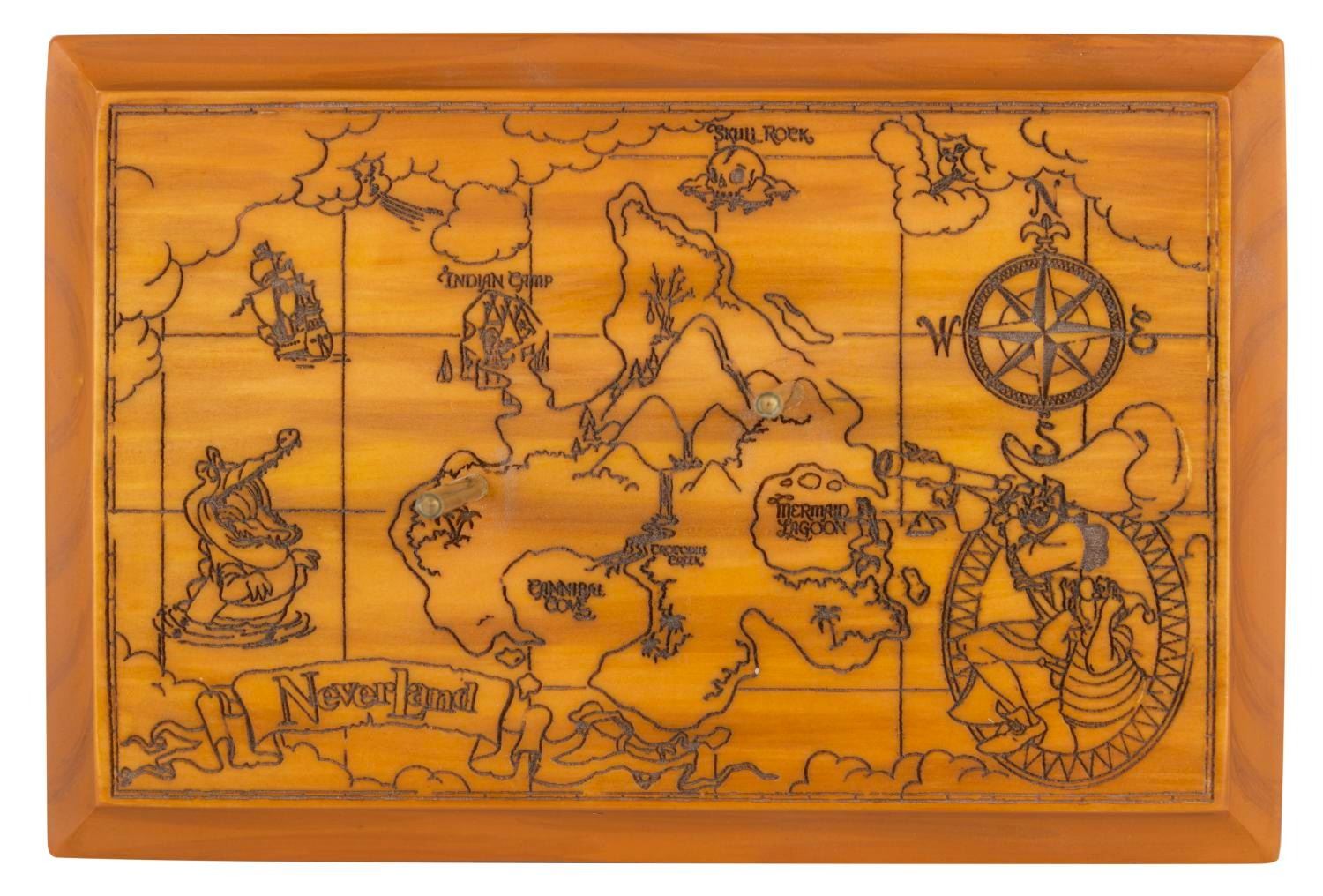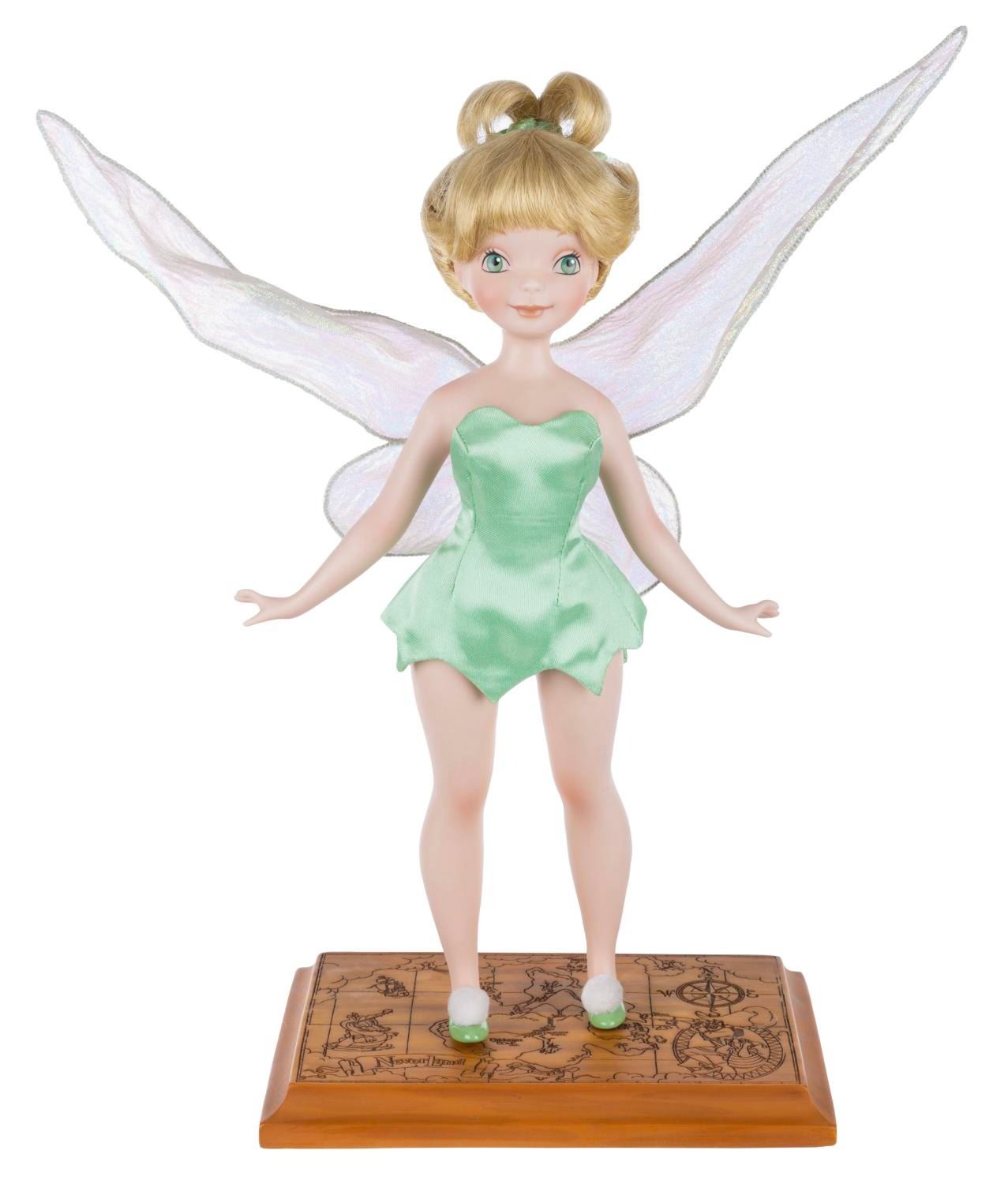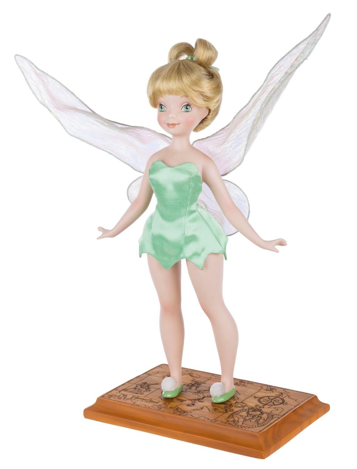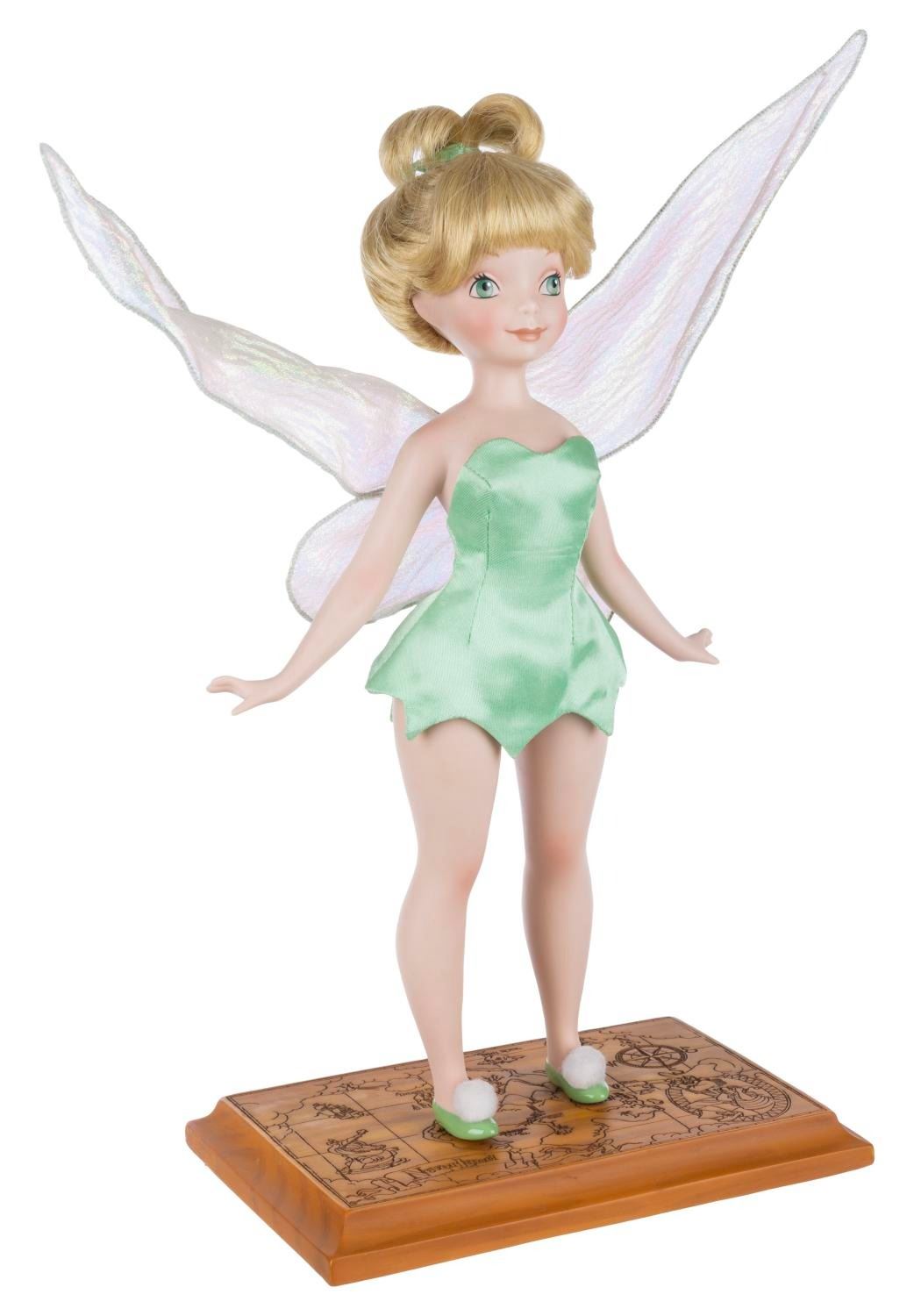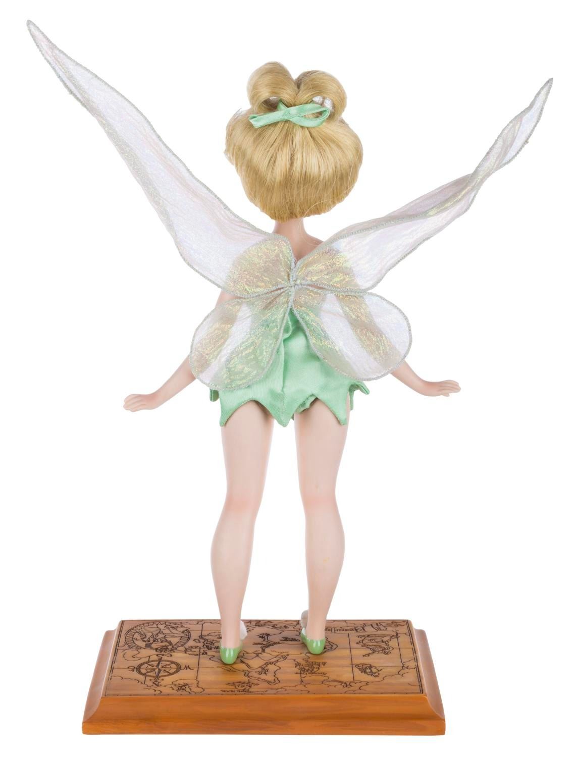 (Disney, 2003) A Tinker Bell porcelain figure commemorating the 50th Anniversary of Disney's "Peter Pan." Modeled after the live-action reference, actress Margaret Kerry, Tinker Bell stands atop a wooden map of Neverland while wearing a beautiful green satin dress, with sheer fabric wings, and fabric hair. Tinker Bell measures 10" x 12" with a 7 "x 4.5" base, and is in very good condition with light handling wear to the base.