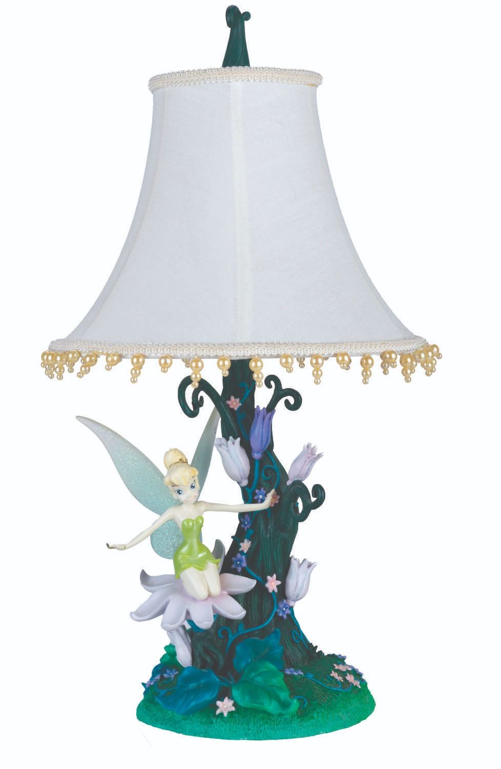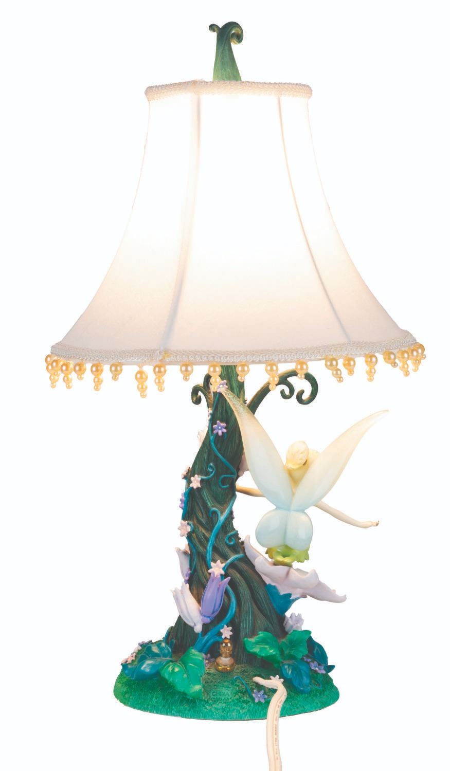 (Disney, 2004) A Tinker Bell "Pixie Garden" Lamp and shade sold through the Disney Catalog in 2004. The resin lamp stands 17" tall including the beaded shade. The lamp is in very good condition but shows some scratches throughout (mainly to the hands) and some soiling to the shade from display. It comes with the original box and packing.