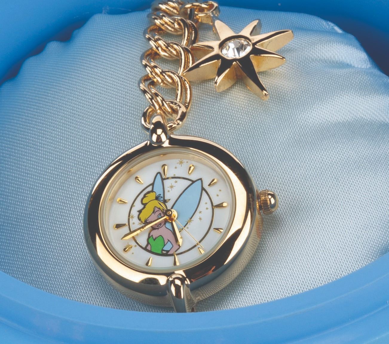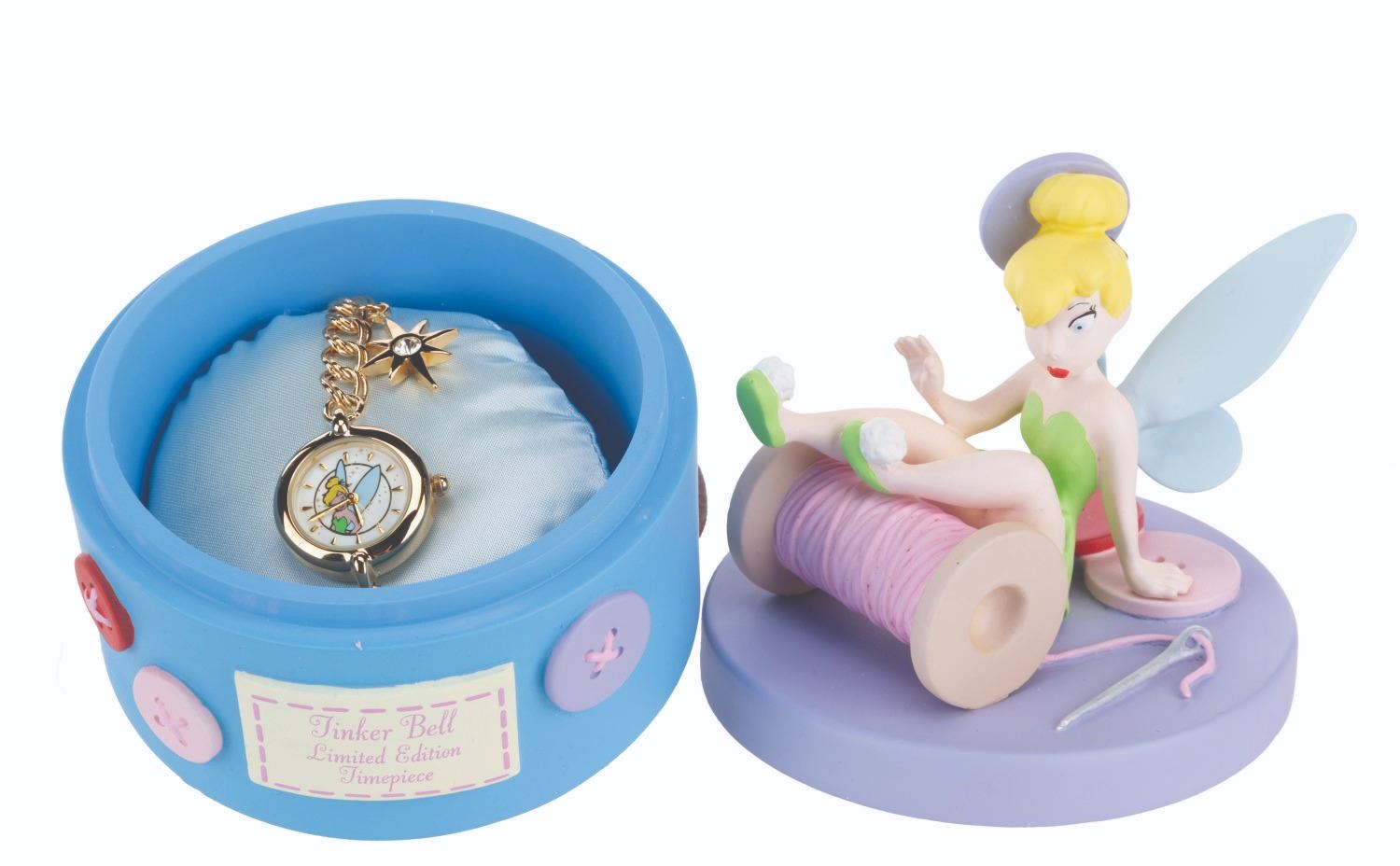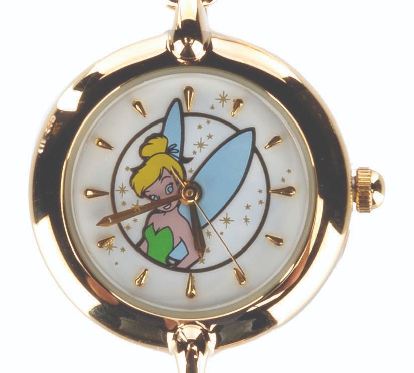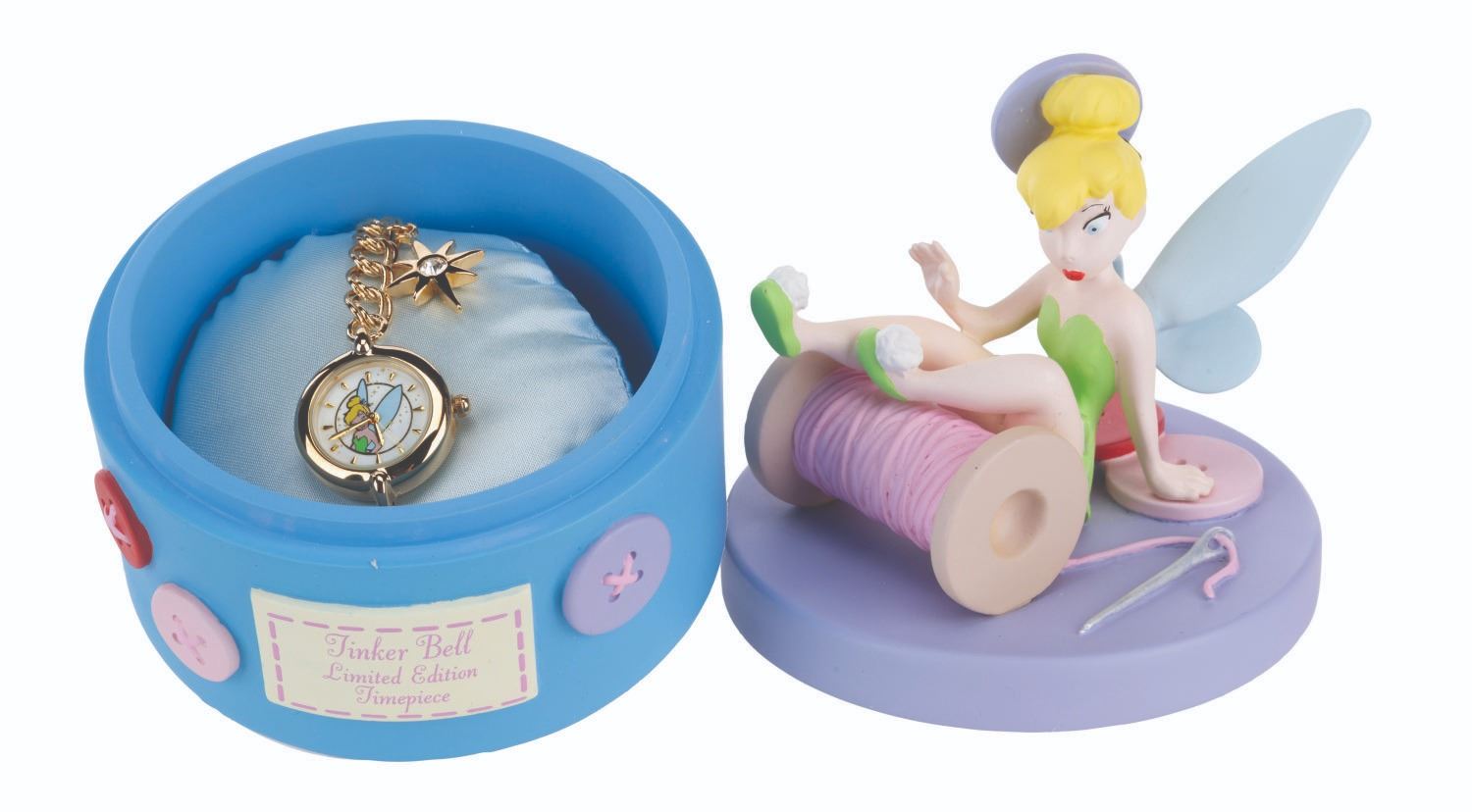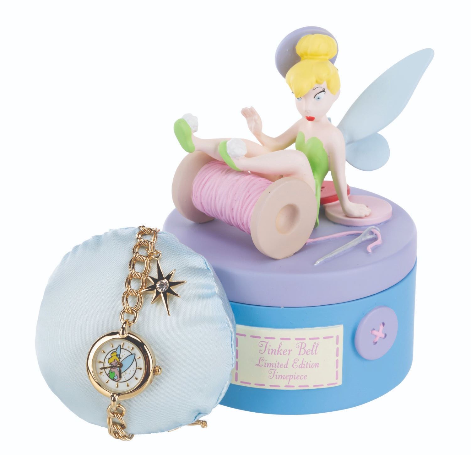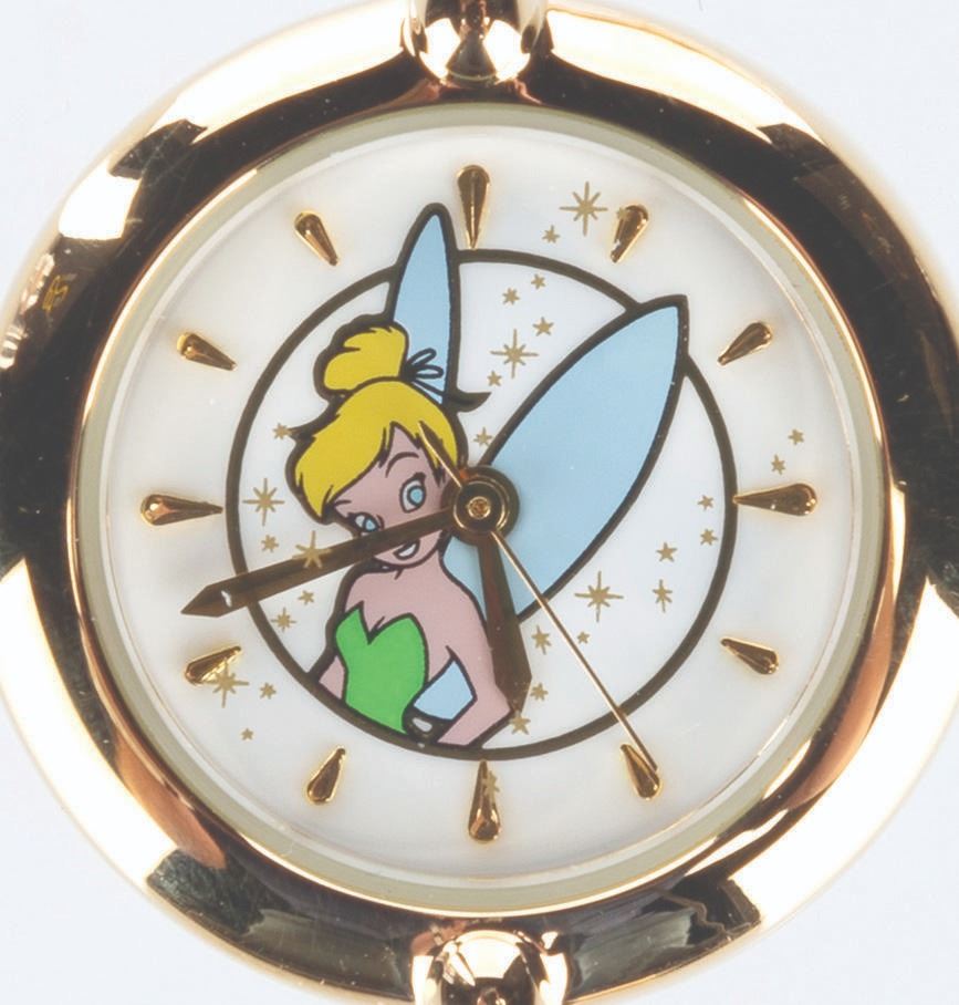 (Disney, 1990s-2010s) A limited edition Tinker Bell charm bracelet watch with two charms and a figural trinket box. Numbered 234 of 2000, the watch measures 8” in length and is in fine untested condition, requiring batteries and possibly service to function. The trinket box is in fine condition.