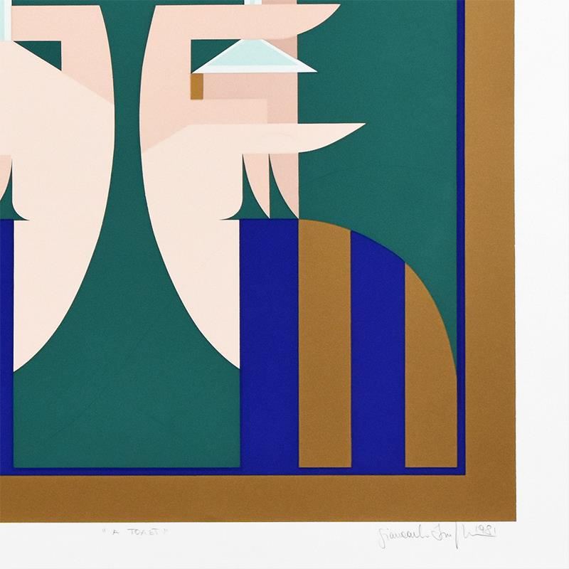 "A Toast" is a limited edition serigraph on paper by Giancarlo Impigia, numbered and hand signed by the artist. Includes Letter of Authenticity. Measures approx. 29" x 39" (with border), 23.5" x 31.5" (image). ** Please note: there are scuffs on the image. **