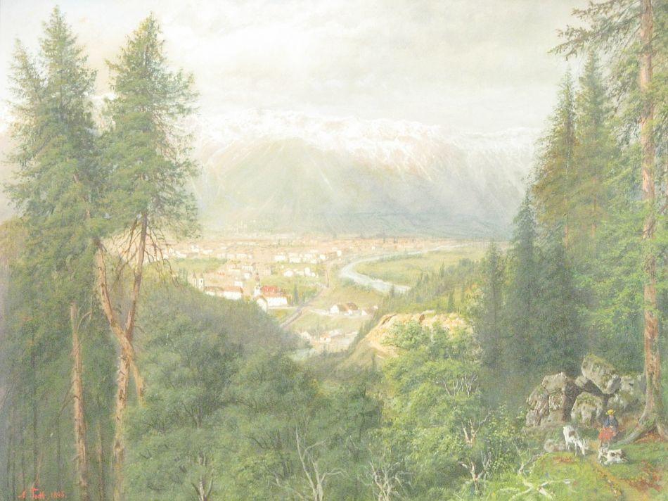 A. Todt (Austrian, 19th Century) Alpine Landscape, Watercolor gouache on paper.