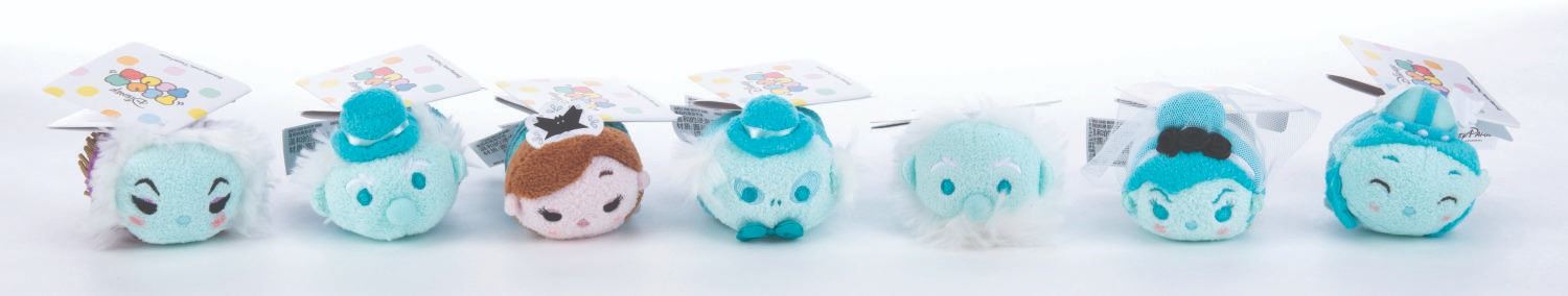 (Tokyo Disneyland, 2016) A Tokyo Disneyland Haunted Mansion Mini Seven Tsum Tsum Set. Included are the Traveler Ghost, Madame Leota, Bride, Cast Member, Prisoner Ghost, Skeleton Ghost, and Opera Singer. Each piece is in fine condition.