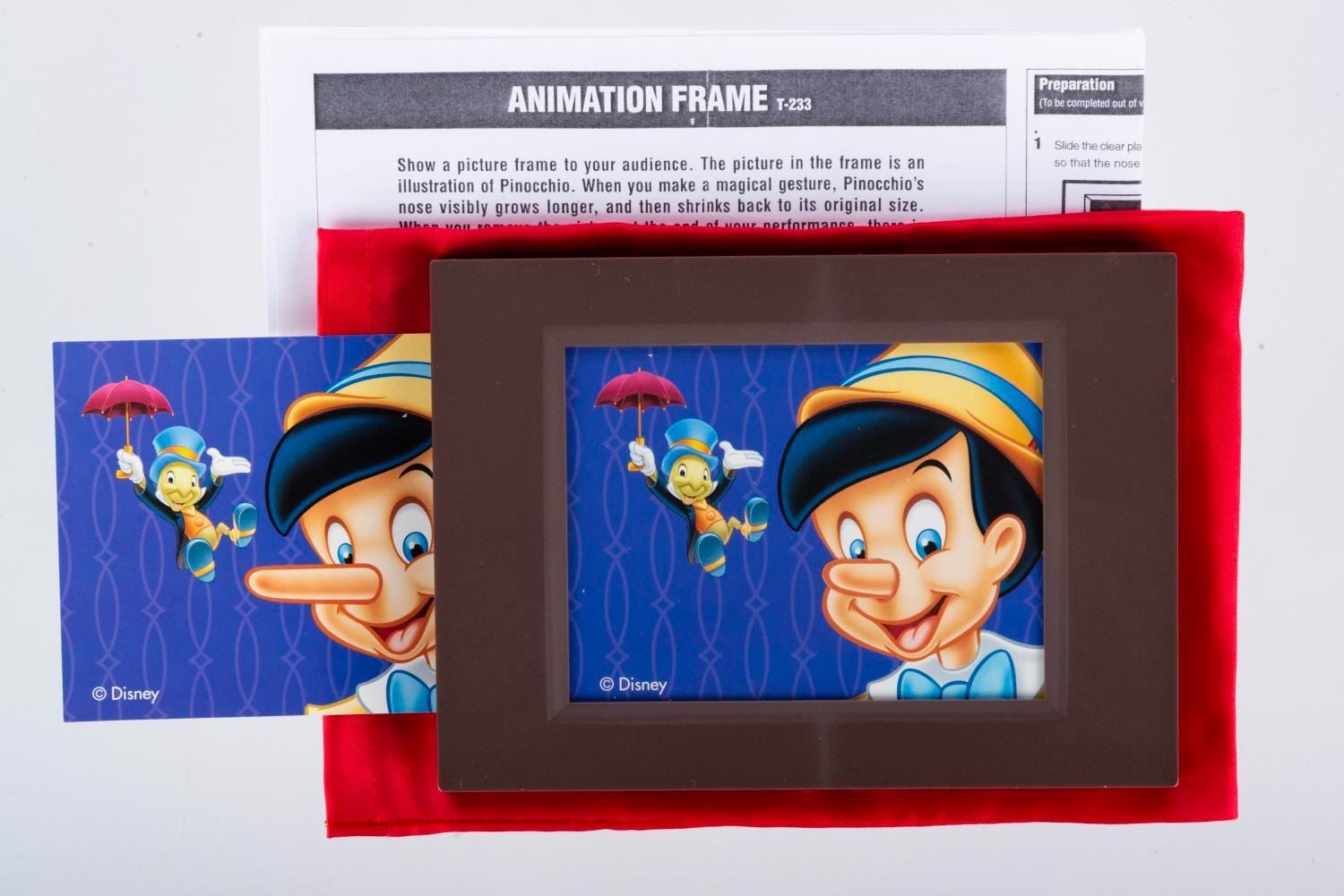 (Tokyo Disneyland, 2008) A Pinocchio Magic Trick where Pinocchio's nose grows right before your very eyes. Measuring 3.5" x 5", this piece, complete with a case and instructions, is in fine condition.