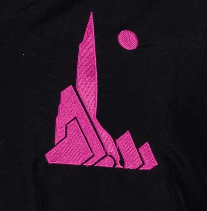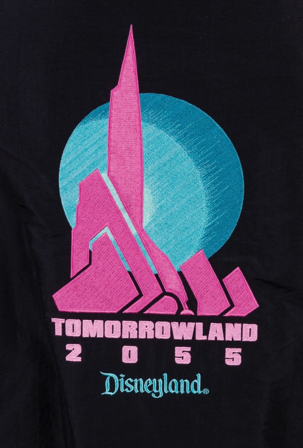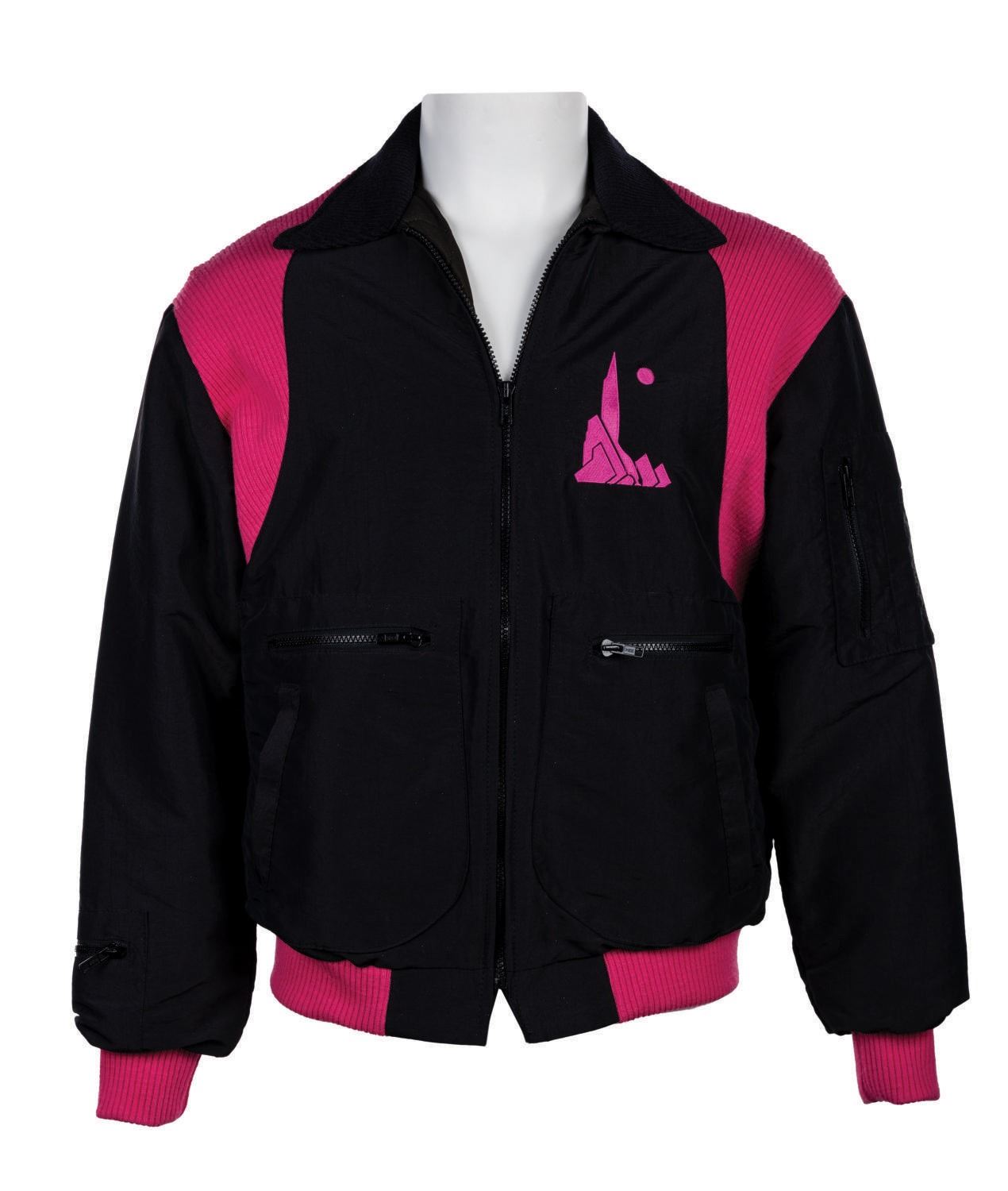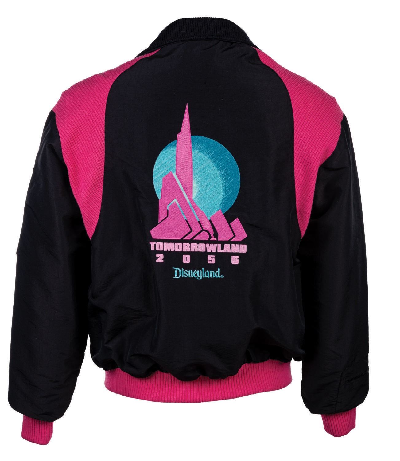 (Disneyland, 1993) A rare version of the jacket manufactured exclusively for the Walt Disney Imagineering Tomorrowland 2055 Project Team. The refurbishment was meant to capitalize on new magical opportunities for Tomorrowland, giving it an extraterrestrial focus. The project was ultimately cancelled, in part to the underperformance of the newly opened Disneyland Paris. The rare pink and black variation of the jacket features the Tomorrowland 2055 logo of a rocket pylon rising over an extraterrestrial landscape, embroidered on the chest and back. Measuring a size medium, the nylon and polyester jacket is in very good condition with minor surface wear.