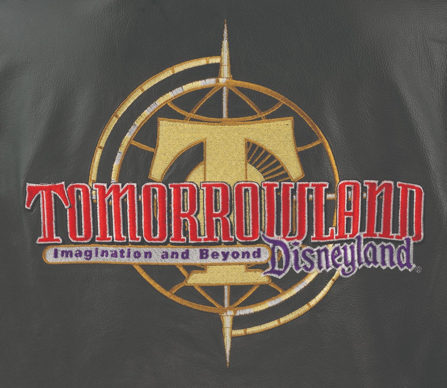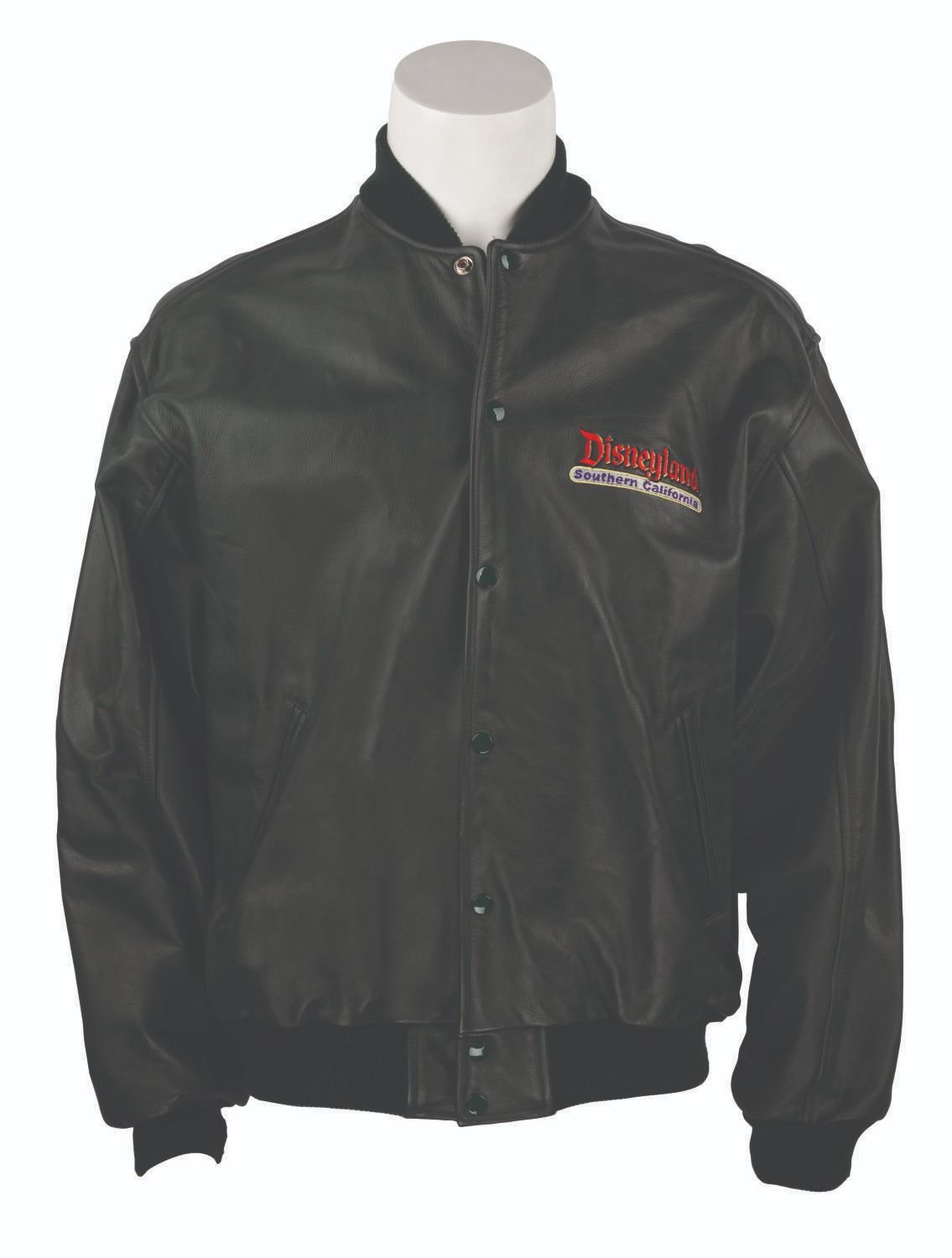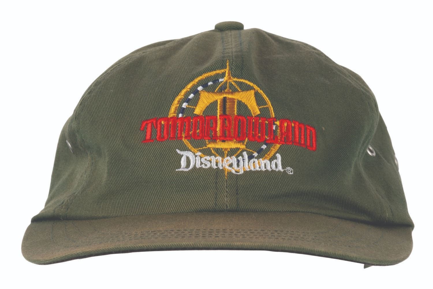 (Disneyland, 1998) A green souvenir jacket and hat commemorating the Tomorrowland relaunch at Disneyland. The jacket measures a size XL and the hat is adjustable. Each piece is in good condition, the hat exhibiting fading and staining to its sweatband, and the jacket exhibiting fading, pilling, scuffs, and light wear from handling and age.