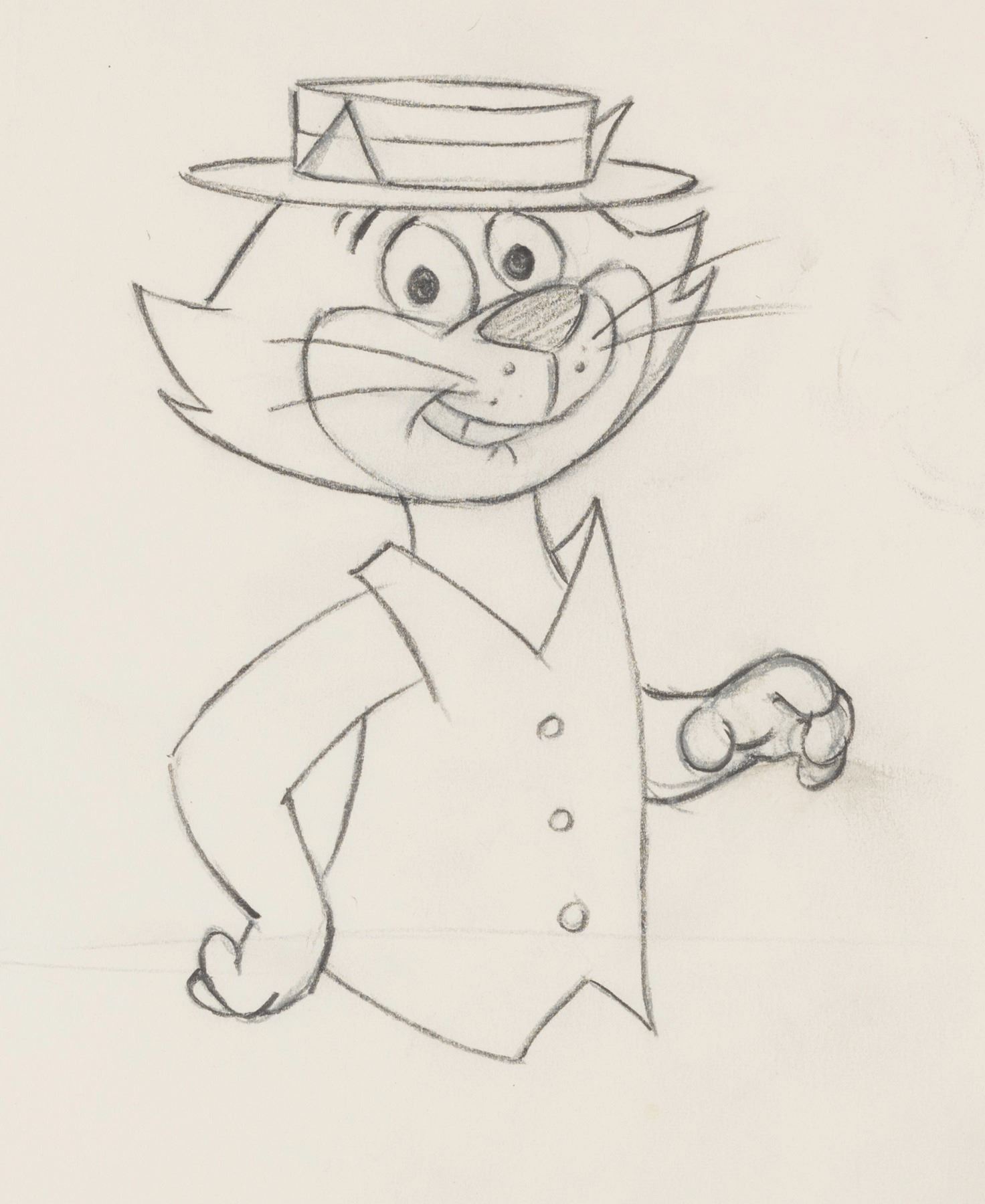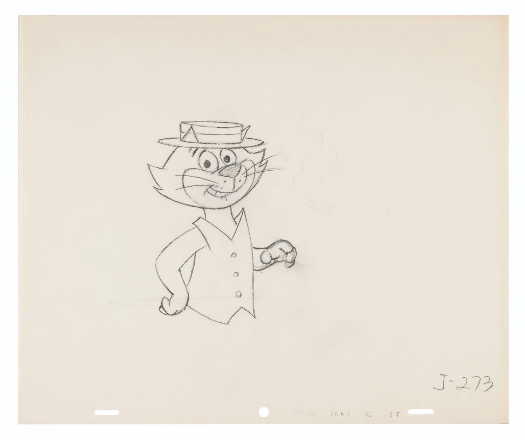 (Hanna-Barbera, 1960s) An original “Top Cat” production drawing. With a character image size of 5.25” x 4” on 10.5” x 12.5” animation paper, the drawing is in good condition with light edge wear and creasing from production use, and light discoloration from age.