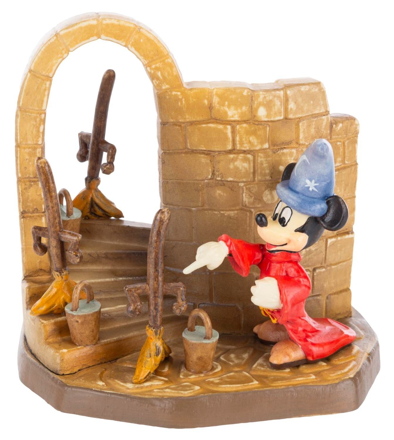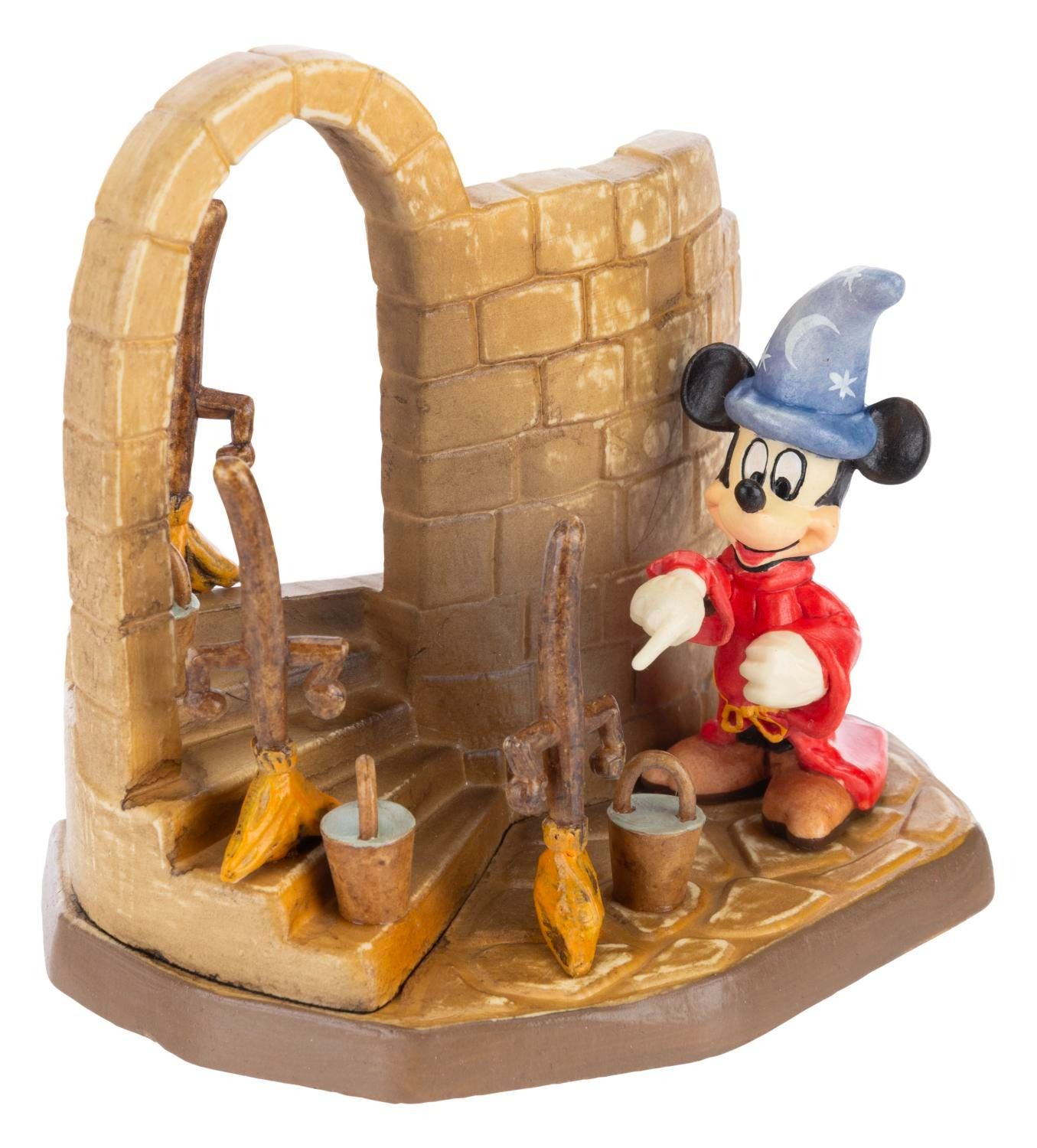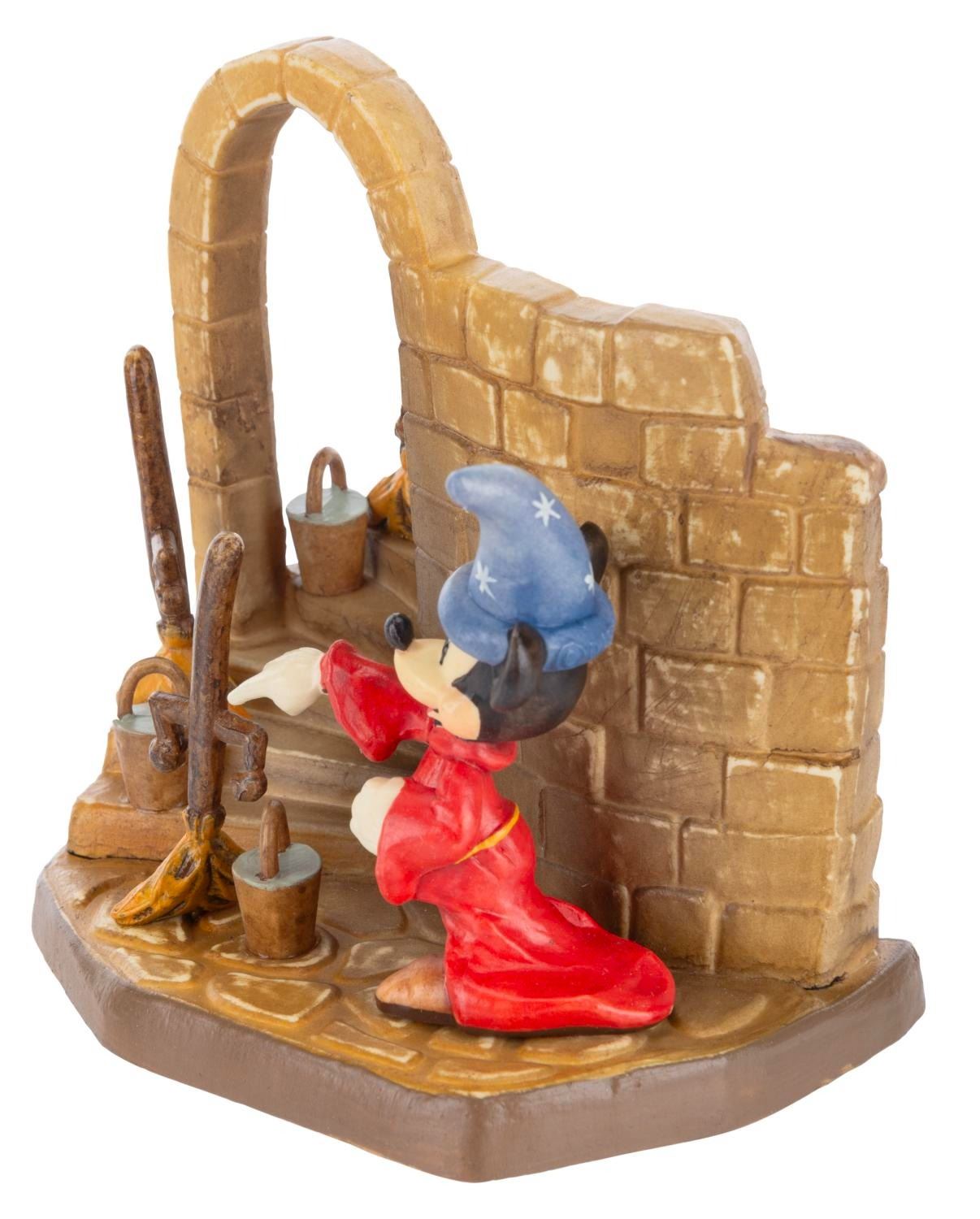 (Anri, 1960s-80s) A Toriart by Anri wooden handcrafted sculpture of Sorcerer Mickey from “Fantasia.” Released in a limited edition, the piece is numbered 61 of 2,500. Measuring 3.5” x 4.5” x 4.5” tall with its original 4” x 5.75” x 7” tall box, the piece is in fine condition.