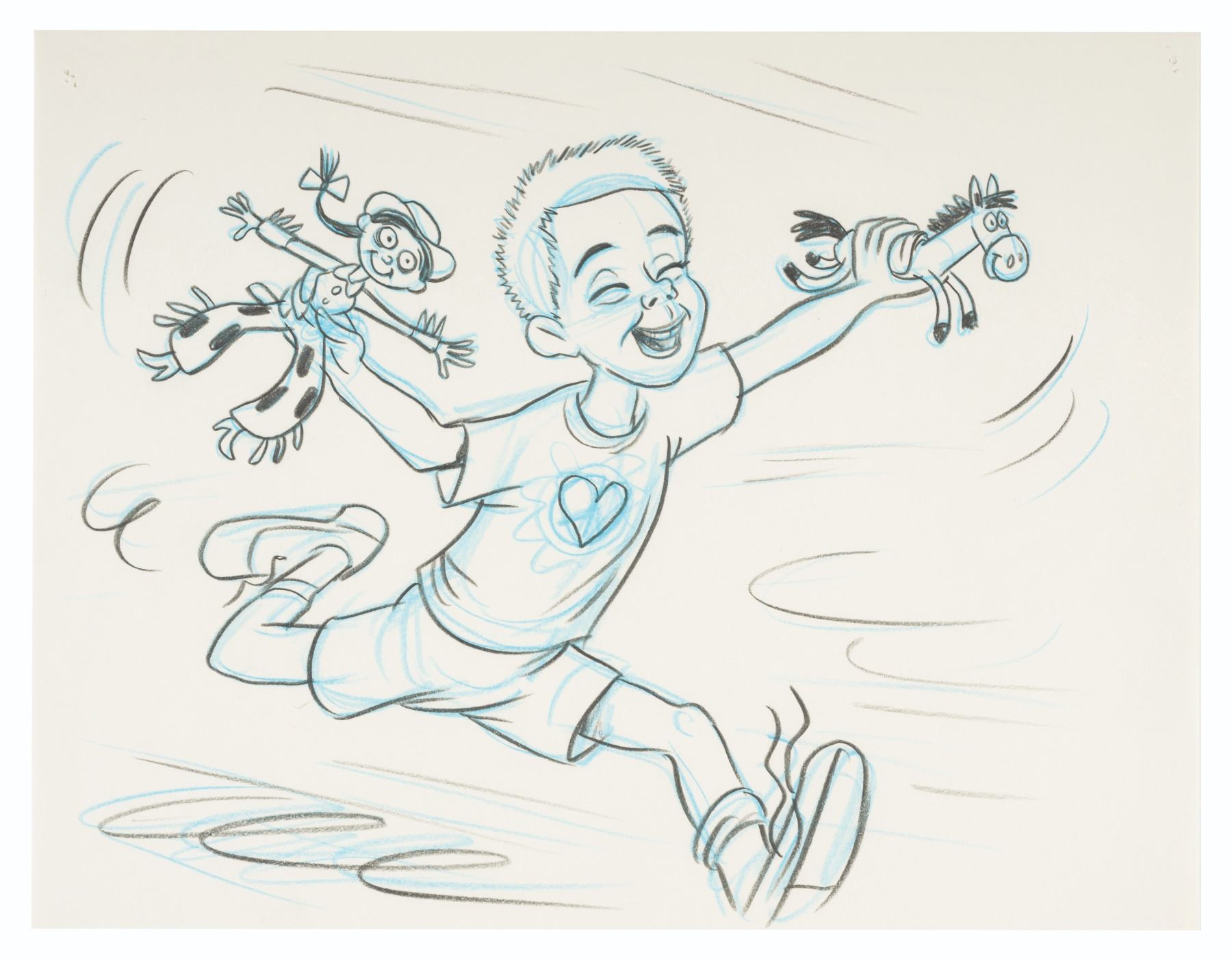(Pixar, 1999) An original production used storyboard panel of Jessie and Bullseye from “Toy Story 2” by Jorgen Klubien. Accomplished in graphite and colored pencil, the panel measures 8.5” x 11” and is in very good condition with small pinholes from production.
