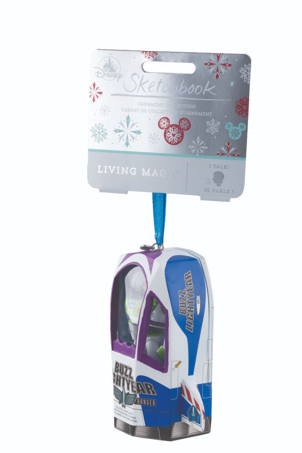 (Disney, 2020) A Sketchbook"Living Magic" ornament of Buzz Lightyear in his box. The sound feature plays eight different Buzz Lightyear phrases when pressed. The heavy resin ornament is in fine working condition, with very light wear to the plastic windows of the box.