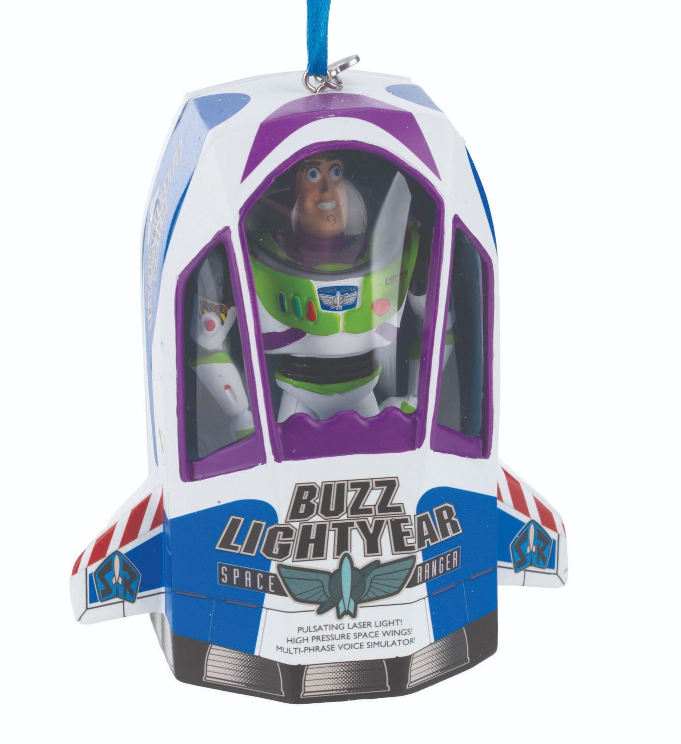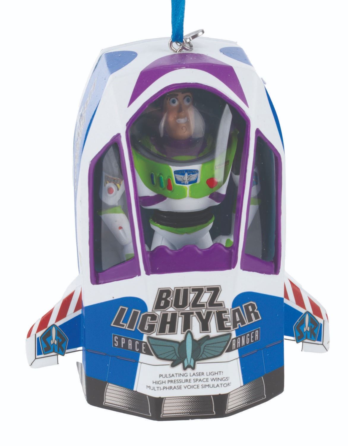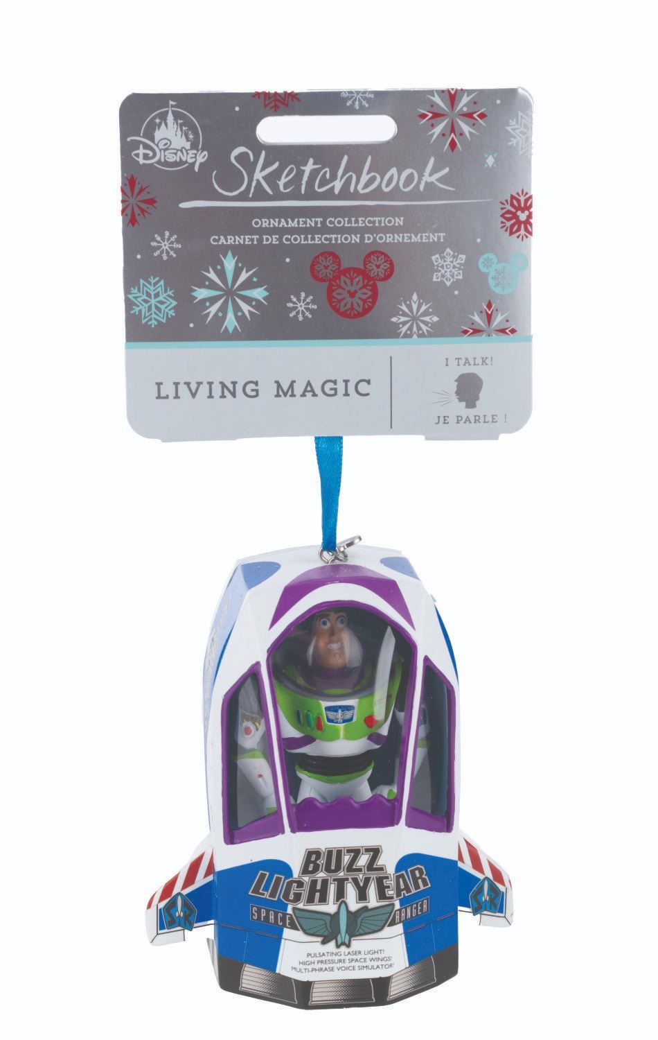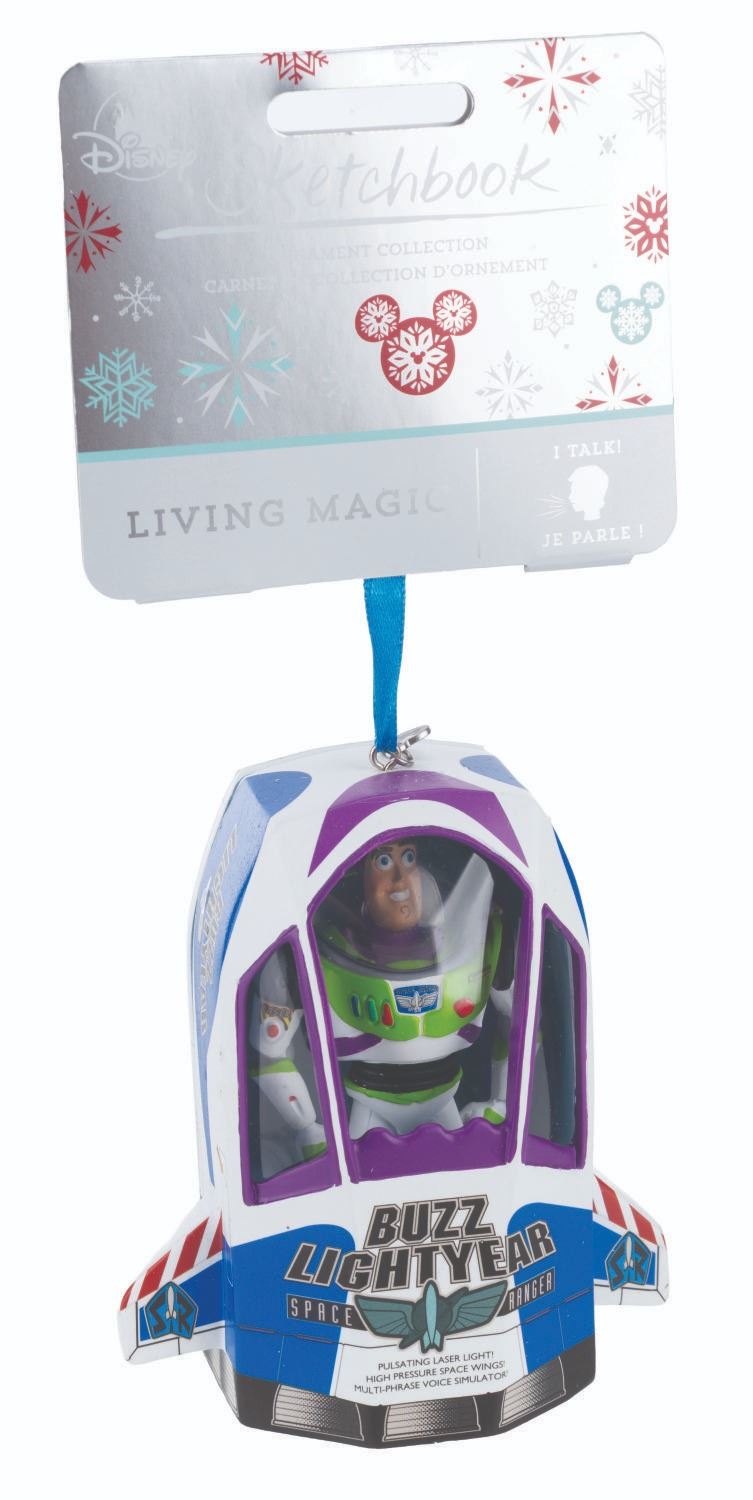 (Disney, 2020) A Sketchbook Living Magic ornament of Buzz Lightyear in his box. The sound feature plays eight different Buzz Lightyear phrases when pressed. The heavy resin ornament is in fine working condition, with very light wear to the plastic windows of the box.