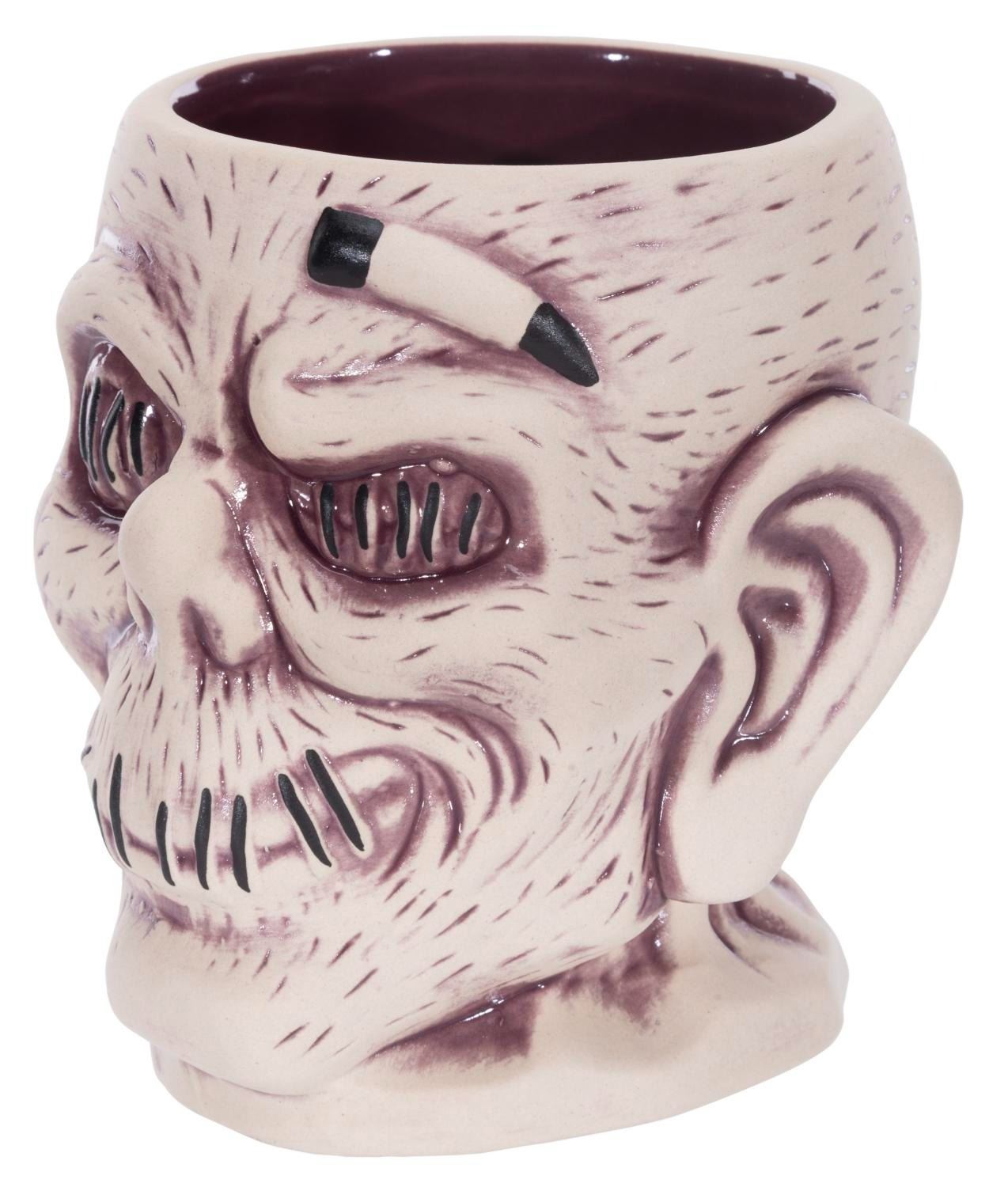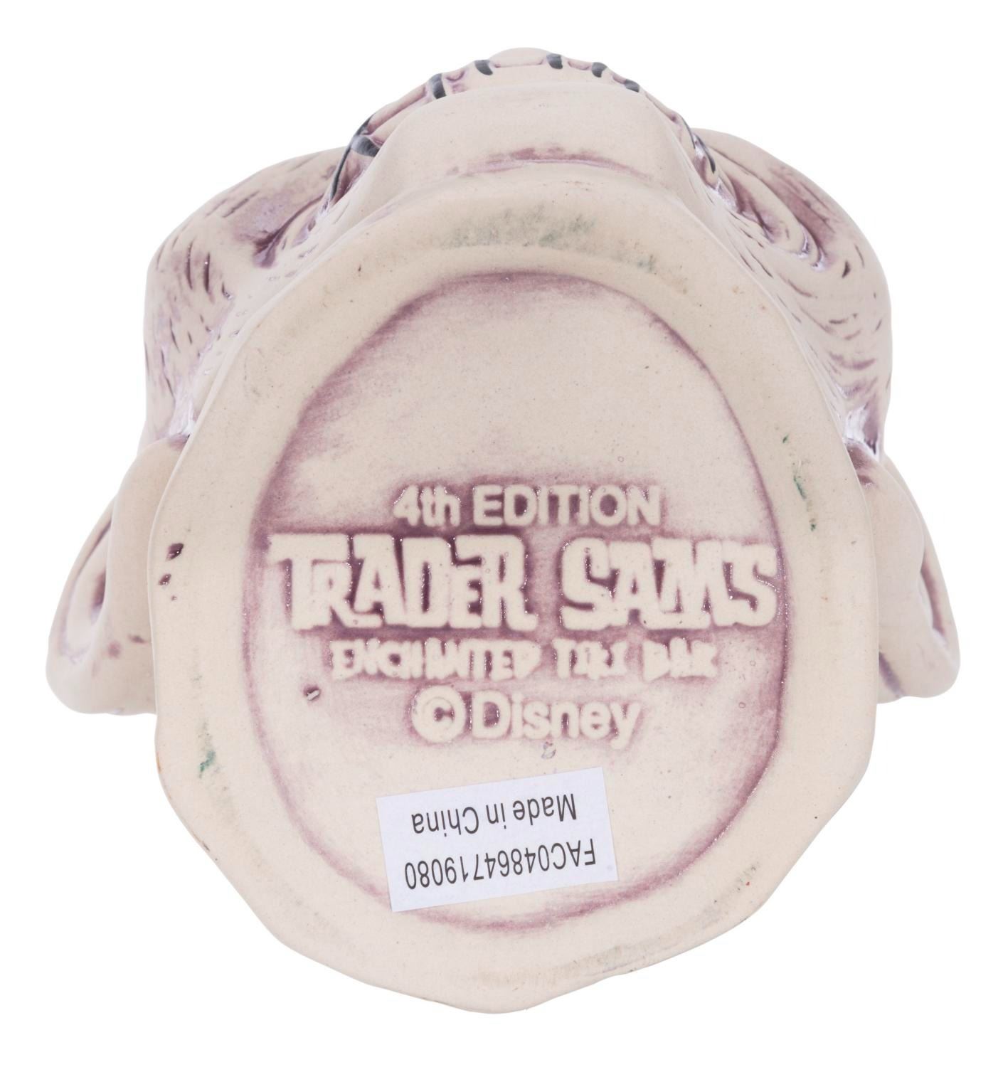 (Disneyland, 2019) A Trader Sam’s Enchanted Tiki Bar fourth edition Shrunken Head mug, inspired by the Jungle Cruise and used to serve the potent Zombie cocktail. Measuring 4.75” tall and 3.5” in diameter, the ceramic mug is in fine condition.