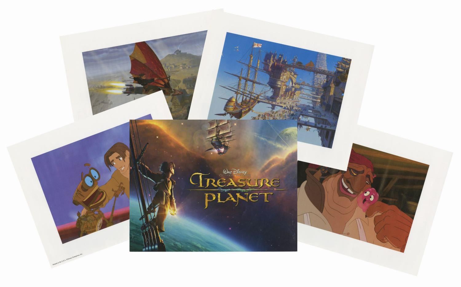 (Disney, 2003) A Treasure Planet Lithograph Portfolio set that accompanied the VHS release of the motion picture. The portfolio contains four lithographs suitable for framing, each featuring memorable scenes from the film. Measuring 11.25” x 14.25”, the set is in very good condition with some minor scuffs and wear to the portfolio cover and edges.
