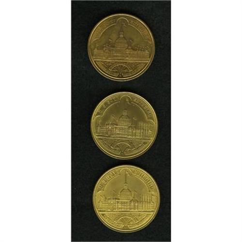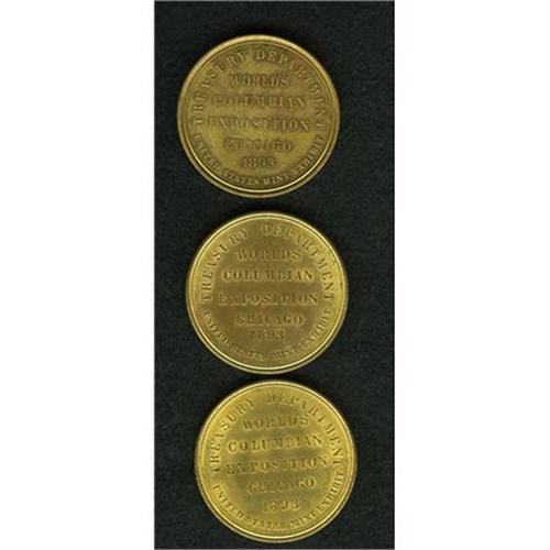 <B>A Trio of 1893 Columbian Expo Mint Exhibit Medals.</B></I> <B>HK-154</B></I>, Uncirculated with a few minor marks; and <B>two HK-155</B></I>, each is an attractive AU, one of the medals has orange-gold toning.<BR><BR><b>Shipping:</b> Coins & Currency (<a target="_blank" href="http://www.heritageauctions.com/common/shipping.php">view shipping information</a>)
