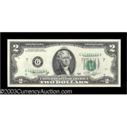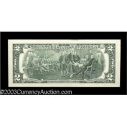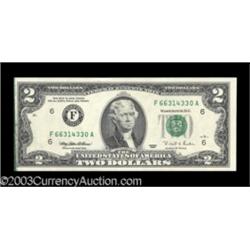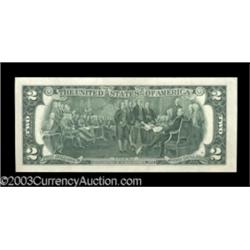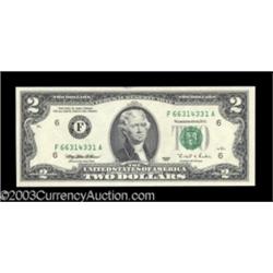 <TABLE cellSpacing=0 cellPadding=0 width="100%" bgColor=#000000 border=0><TBODY> <TR><TD width="100%"><TABLE cellSpacing=1 cellPadding=3 width="100%" border=0><TBODY><TR><TD width="100%" bgColor=#79735c><FONT face=arial color=#ffffff size=3><B>Description</B> </FONT></TD></TR><TR><TD width="100%" bgColor=#ffffff><FONT face=arial size=2><B>A Trio of $2 Feds</B></I><BR>Fr. 1935-G $ 1976 Federal Reserve Note. A Chicago $2 with the third printing shifted slightly downward, Gem Crisp Uncirculated.<BR>Fr. 1936-F $2 1995 Federal Reserve Notes (2). A consecutive pair from the Atlanta district with the first note displaying an ink smear in the left face margin and the following serial being normal. Gem Crisp Uncirculated.<BR>(100-200 ) (3 notes) </FONT></TD></TR></TBODY></TABLE></TD></TR></TBODY></TABLE><BR><TABLE cellSpacing=0 cellPadding=0 width="100%" bgColor=#000000 border=0><TBODY><TR> 3 notes Important notice: Heritage usually auctions material at the rate of 200-250 lots per hour. On some occasions eBay Live bid software or the Internet may not be able to keep up with the pace of the auction. We recommend placing a realistic absentee bid now as insurance to avoid disappointment. Occasionally the auctioneer may eliminate or reject an eBay Live bid, and the auctioneer may also reopen a lot after the close of the eBay live bidding (usually because we missed an audience bid), and may reject your bid even if it shows you as the winning bidder. By bidding via eBay Live, you agree that Heritage may award the lot to another bidder at its sole discretion under the circumstances described above or any other reasonable circumstances. Also please note that all Heritage lots purchased through eBay Live carry a 20% Buyer's Premium. Please make sure you read the Terms and Conditions before you bid.</TR></TBODY></TABLE>