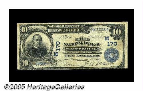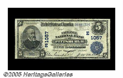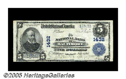 <B>A Trio of Eastern Third Charter Nationals</B></I><BR>Baltimore, MD - $5 1902 Plain Back Fr. 598 National Bank of Baltimore Ch. # 1432 EF, inked date "April 14, 1927" on back<BR>St. Louis, MO - $10 1902 Date Back Fr. 616 Third NB Ch. # (M)170 Fine<BR>Pittsburgh, PA - $5 1902 Date Back Fr. 590 Exchange NB Ch. # (E)1057 VF.<BR>