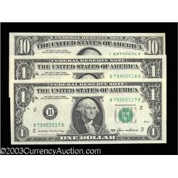 <TABLE cellSpacing=0 cellPadding=0 width="100%" bgColor=#000000 border=0><TBODY> <TR><TD width="100%"><TABLE cellSpacing=1 cellPadding=3 width="100%" border=0><TBODY><TR><TD width="100%" bgColor=#79735c><FONT face=arial color=#ffffff size=3><B>Description</B> </FONT></TD></TR><TR><TD width="100%" bgColor=#ffffff><FONT face=arial size=2><B>A Trio of Inking Errors</B></I><BR>Fr. 1913-B $1 1985 Federal Reserve Notes. A consecutive pair with the left quarter of the back very lightly inked. Gem Crisp Uncirculated.<BR>Fr. 2023-L $20 1977 Federal Reserve Note. The left third of the back is very lightly inked. Gem Crisp Uncirculated.<BR>(200-250 ) (3 notes) </FONT></TD></TR></TBODY></TABLE></TD></TR></TBODY></TABLE><BR><TABLE cellSpacing=0 cellPadding=0 width="100%" bgColor=#000000 border=0><TBODY><TR> 3 notes Important notice: Heritage usually auctions material at the rate of 200-250 lots per hour. On some occasions eBay Live bid software or the Internet may not be able to keep up with the pace of the auction. We recommend placing a realistic absentee bid now as insurance to avoid disappointment. Occasionally the auctioneer may eliminate or reject an eBay Live bid, and the auctioneer may also reopen a lot after the close of the eBay live bidding (usually because we missed an audience bid), and may reject your bid even if it shows you as the winning bidder. By bidding via eBay Live, you agree that Heritage may award the lot to another bidder at its sole discretion under the circumstances described above or any other reasonable circumstances. Also please note that all Heritage lots purchased through eBay Live carry a 20% Buyer's Premium. Please make sure you read the Terms and Conditions before you bid.</TR></TBODY></TABLE>