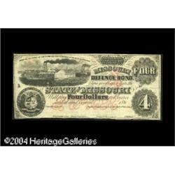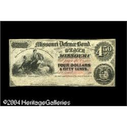 A Trio of Missouri Defence Bonds$4.50 186_ Remainder Cr <B>A Trio of Missouri Defence Bonds.</B></I><BR>$4.50 186_ Remainder Cr. 15 VF, watermarked, hinged<BR>$4 186_ Remainder Cr. 16 EF,unwatermarked, hinged<BR>$3 186_ Remainder Cr. 17B watermarked AU, hinged.<BR>A nice looking group of these always popular items.<BR> 3 notes <BR><BR><B>Important notice:</B> Heritage usually auctions material at the rate of 200-250 lots per hour. On some occasions eBay Live bid software or the Internet may not be able to keep up with the pace of the auction. We recommend placing a realistic absentee bid now as insurance to avoid disappointment. Occasionally the auctioneer may eliminate or reject an eBay Live bid, and the auctioneer may also reopen a lot after the close of the eBay live bidding (usually because we missed an audience bid), and may reject your bid even if it shows you as the winning bidder. By bidding via eBay Live, you agree that Heritage may award the lot to another bidder at its sole discretion under the circumstances described above or any other reasonable circumstances. Since eBay bids are not shown to us until we open the lot on the floor, we treat those bids just like floor bids. In most cases the floor responds before the eBay bid is presented to us, due to Internet lag time, so for consistency we have made it a policy that floor bids are always considered first over tie eBay live bids. Also please note that all Heritage lots purchased through eBay Live carry a 20% Buyer's Premium. Please make sure you read the Terms and Conditions before you bid. This lot is being auctioned in conjunction with a live floor auction by Heritage Galleries & Auctioneers. All final auction and invoice information will be supplied by Heritage Galleries & Auctioneers, and all other information should be considered preliminary. Lot:15803
