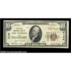 A Trio of Notes from East Liverpool, OHEast Liverpool, OH - $10 1929 Ty. 1 The First NB Ch. # 2146 Very FineEast Liverpool, OH - $10 1929 Ty. 2 The First NB Ch. # 2146 EFEast Liverpool, OH - $20 1929 Ty. 1 The First NB Ch. # 2146 Very Fine. 3 notes Important notice: Heritage usually auctions material at the rate of 200-250 lots per hour. On some occasions eBay Live bid software or the Internet may not be able to keep up with the pace of the auction. We recommend placing a realistic absentee bid now as insurance to avoid disappointment. Occasionally the auctioneer may eliminate or reject an eBay Live bid, and the auctioneer may also reopen a lot after the close of the eBay live bidding (usually because we missed an audience bid), and may reject your bid even if it shows you as the winning bidder. By bidding via eBay Live, you agree that Heritage may award the lot to another bidder at its sole discretion under the circumstances described above or any other reasonable circumstances. Also please note that all Heritage lots purchased through eBay Live carry a 20% Buyer's Premium. Please make sure you read the Terms and Conditions before you bid.