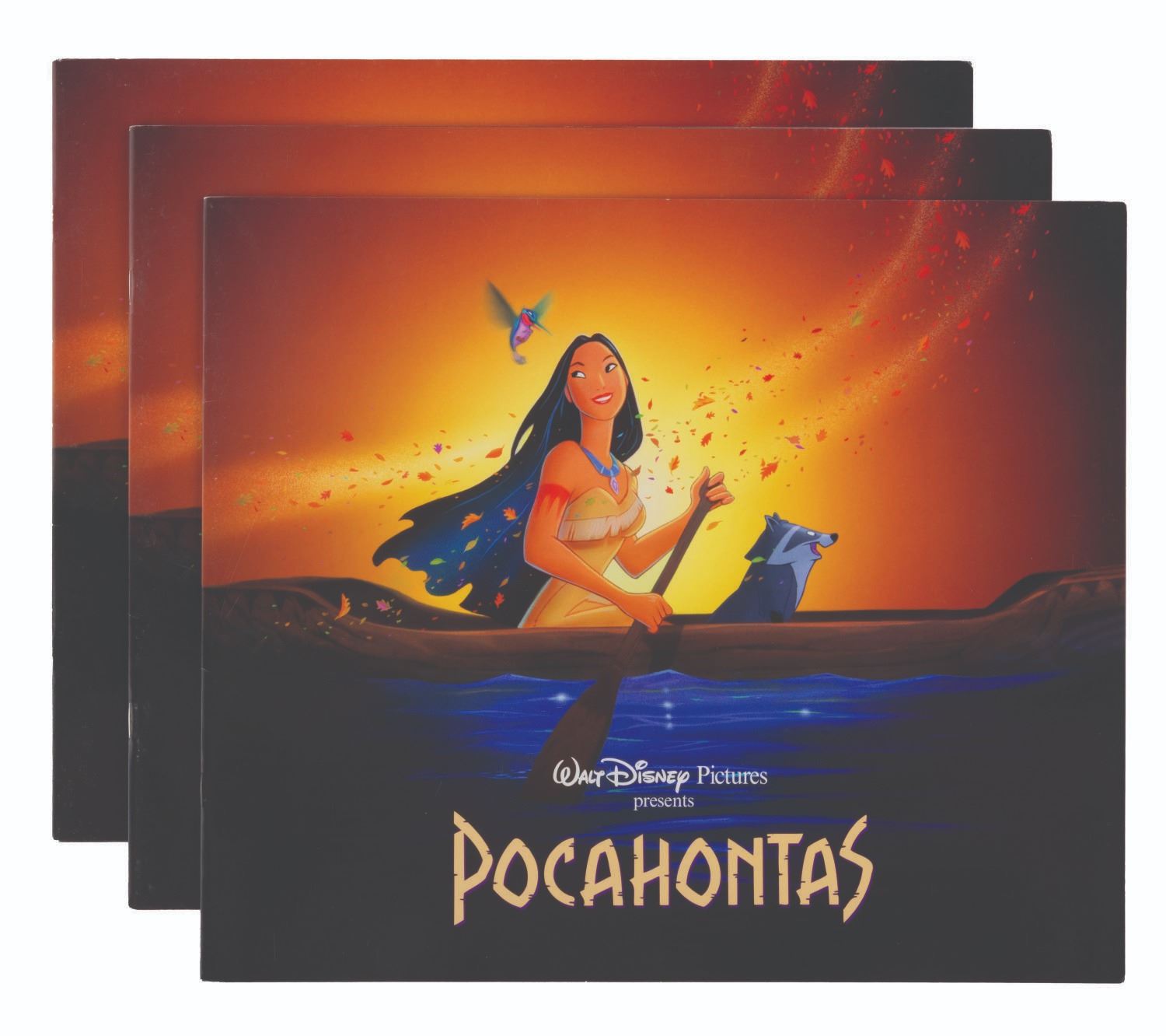 (Disney, 1995) Three “Pocahontas” premiere programs from the film’s exclusive engagement at the Fox theatre in Atlanta, Georgia from June 16th thru the 22nd, 1995. The programs are full of beautiful imagery, lyrics, and character outlines from the film. Each measuring 13” x 11”, the programs are in very good condition with typical light handling wear.