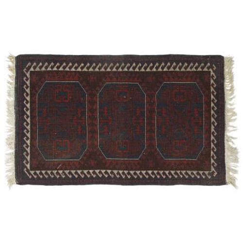 <B>A Turkish Rug</B></I><BR><BR>Unknown maker, Turkey<BR>Twentieth century<BR>Wool, cotton <BR>55 x 31 inches (139.7 x 78.7 cm)<BR>Unmarked<BR> The pile carpet of triple medallion form on shaded red ground.<BR><BR><b>Shipping:</b> Requires 3rd Party Shipping (<a target="_blank" href="http://www.heritageauctions.com/common/shipping.php">view shipping information</a>)