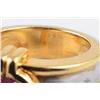 With a center ruby weighing 3 carat, flanked by 6 round cut diamonds H-I VS-SI weighing approximately 0.3 carat total. Ring width 1/2, size 6, weight 13.2g.
