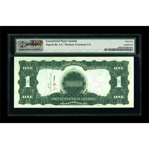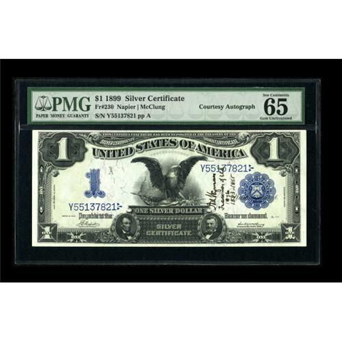 <B>A.U. Wyman Courtesy Autograph Fr. 230 $1 1899 Silver Certificate PMG Gem Uncirculated 65 EPQ.</B></I> This is the A plate position note of the only four notes that Wyman autographed of this Friedberg number.<BR><BR><b>Shipping:</b> Coins & Currency (<a target="_blank" href="http://www.heritageauctions.com/common/shipping.php">view shipping information</a>)