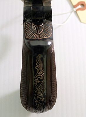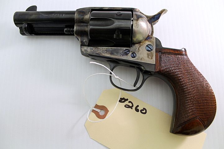 REVOLVER, CAL: 45LC, SN: J05038, PATENT DATE: JAN. 19, 1875, ENGAVED FRAME, CHECKERED WOOD GRIPS, BLUED, CASE HARDENED