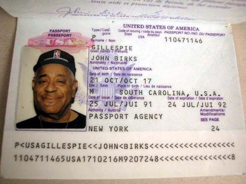 A UNITED STATES PASSPORT Issued to John Birks Gillespie on July 25, 1991
