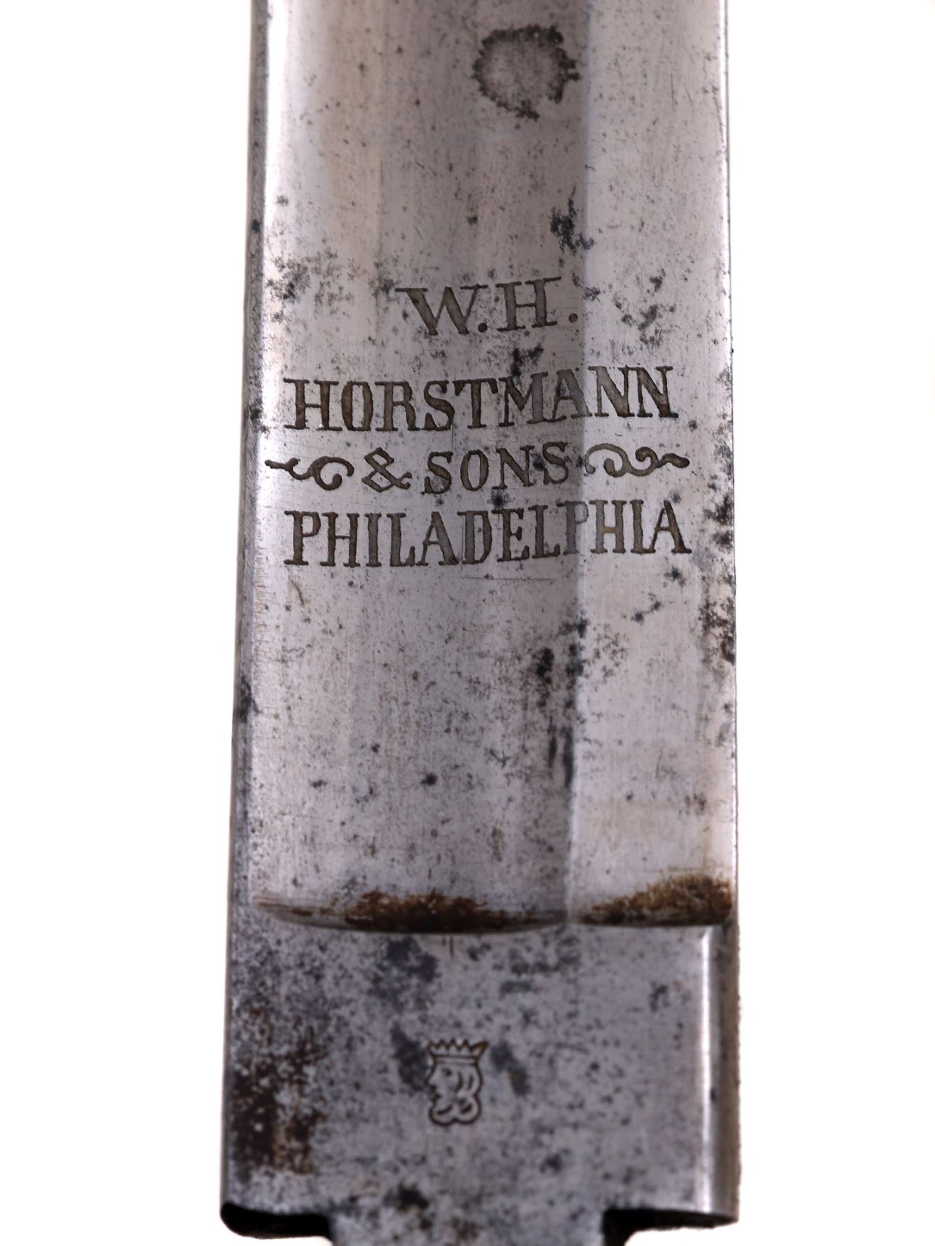 A fine etched and gilt American sword blade made by William h. Horstmann & sons. The manufacturers of dress trimmings and military goods loctaed at 5th & Cherry Streets, Philadelphia, PA.