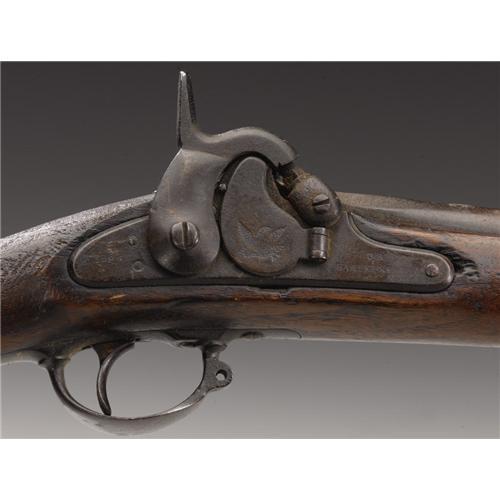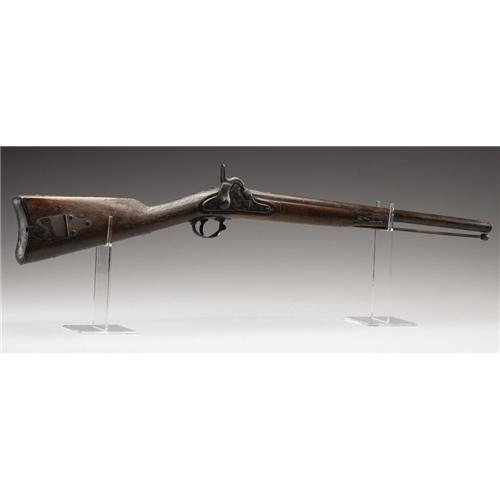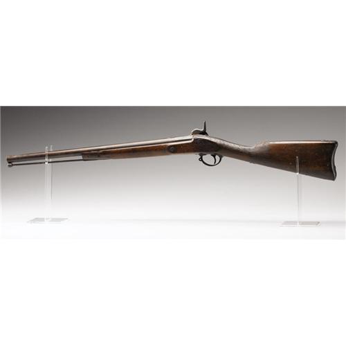 <B>A Unique Confederate-Altered Harper's Ferry Rifle</B></I> This 1855 U. S. Percussion Model .58 caliber rifle is stamped '1860' and 'Harper's Ferry' at the lock and the eagle motif stamped on the tape primer compartment. Originally fitted with a 33" round barrel, this rifle is unique in that it has been converted by a creative Confederate to use as a cavalry carbine. The barrel now measures just over 22" and the walnut stock has been checkered just behind the hammer and toward the patchbox for added grip o horseback. This is an interesting and attractive Confederate conversion.<BR><B>Provenance:</B></I> <I>The Tharpe Collection of Military History</B></I><BR> <B>Exhibited:</B></I> <I>The Liberty Heritage Society Museum</B></I><BR><BR><b>Shipping:</b> Bats, Clubs, Sticks, Swords, Rif (<a target="_blank" href="http://www.heritageauctions.com/common/shipping.php">view shipping information</a>)