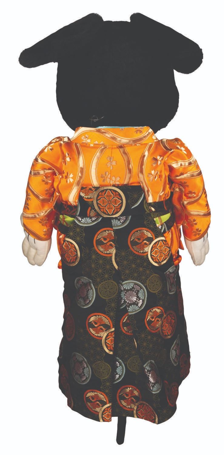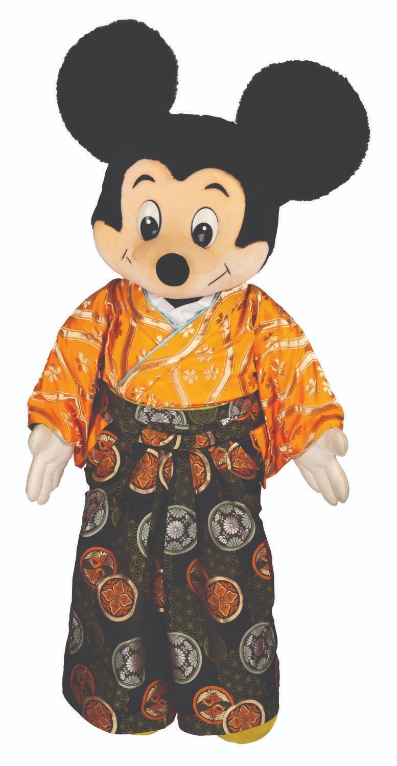 (Tokyo Disneyland, 1986) A life-sized plush Mickey Mouse in a Tokyo Disneyland kimono. This Mickey was given to Don McGrath, who on March 25, 1986, passed through the Magic Kingdom's turnstile and became the 500 millionth Guest to enter a Disney Park. McGrath was given a gift from each of the four Parks at the time—Disneyland, the Magic Kingdom, EPCOT Center, and Tokyo Disneyland. This Mickey is in as-new condition, dressed in an exquisite silk kimono that may be a one-of-a-kind creation for Mickey in Tokyo Disneyland that year. Measuring 29” x 19” x 66” high, this Mickey displays in fine condition with light spotting on the hands and white silk of the kimono. Due to size and weight, this item requires special shipping arrangements. Please inquire before bidding.