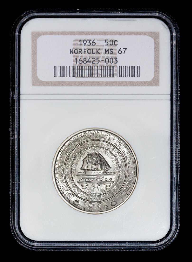 A United States 1936 Norfolk Commemorative 50c Coin.