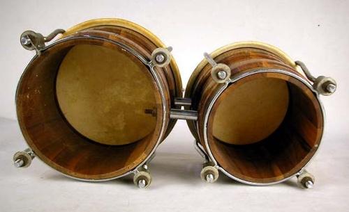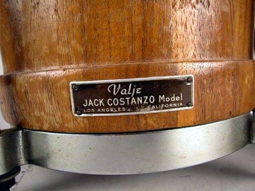 A VALJE JACK COSTANZO MODEL DOUBLE DRUM IN WOOD CASE wear and imperfections to surface, 7"h x 16"l