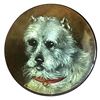 1 Medium size 19th century hand painted pearl dog button. This button from a larger set is incredibly detailed and hand painted in the Vernis Martin style. Vernis Martin paintings were a style of painting in the 18th and 19th century often created on lacquer boxes and furniture and the like. This sporting button of the detailed dogs head is hand painted in that style and most likely was created in France at the time Vernis Martin paintings were popular. This is a rare find in buttons as there are very few buttons we can attribute to this style and artistry. We have also given you here the Wikipedia partial definition or origin of this technique. Vernis Martin is a type (or a number of types) of japanning or imitation lacquer named after the 18th century French Martin brothers: The second photo was taken at an angle so you could see some of the chatoyant color in the pearl base. The coloration in the pearl when turned around in the light changes every whi.ch way you turn and is just exquisite.?