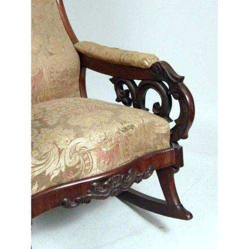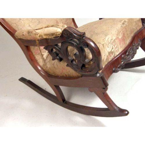 A VICTORIAN CARVED MAHOGANY PARLOR ROCKING CHAIR<BR><BR>American, some wear, 41-1/2"h