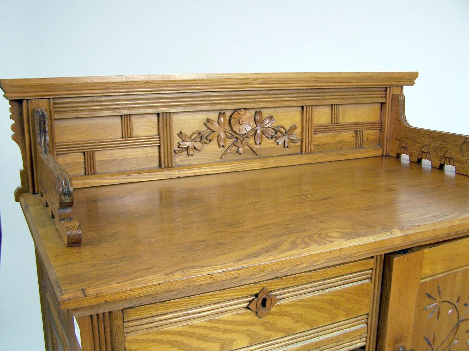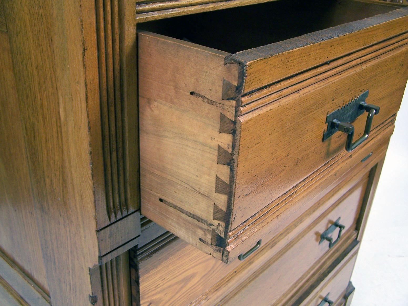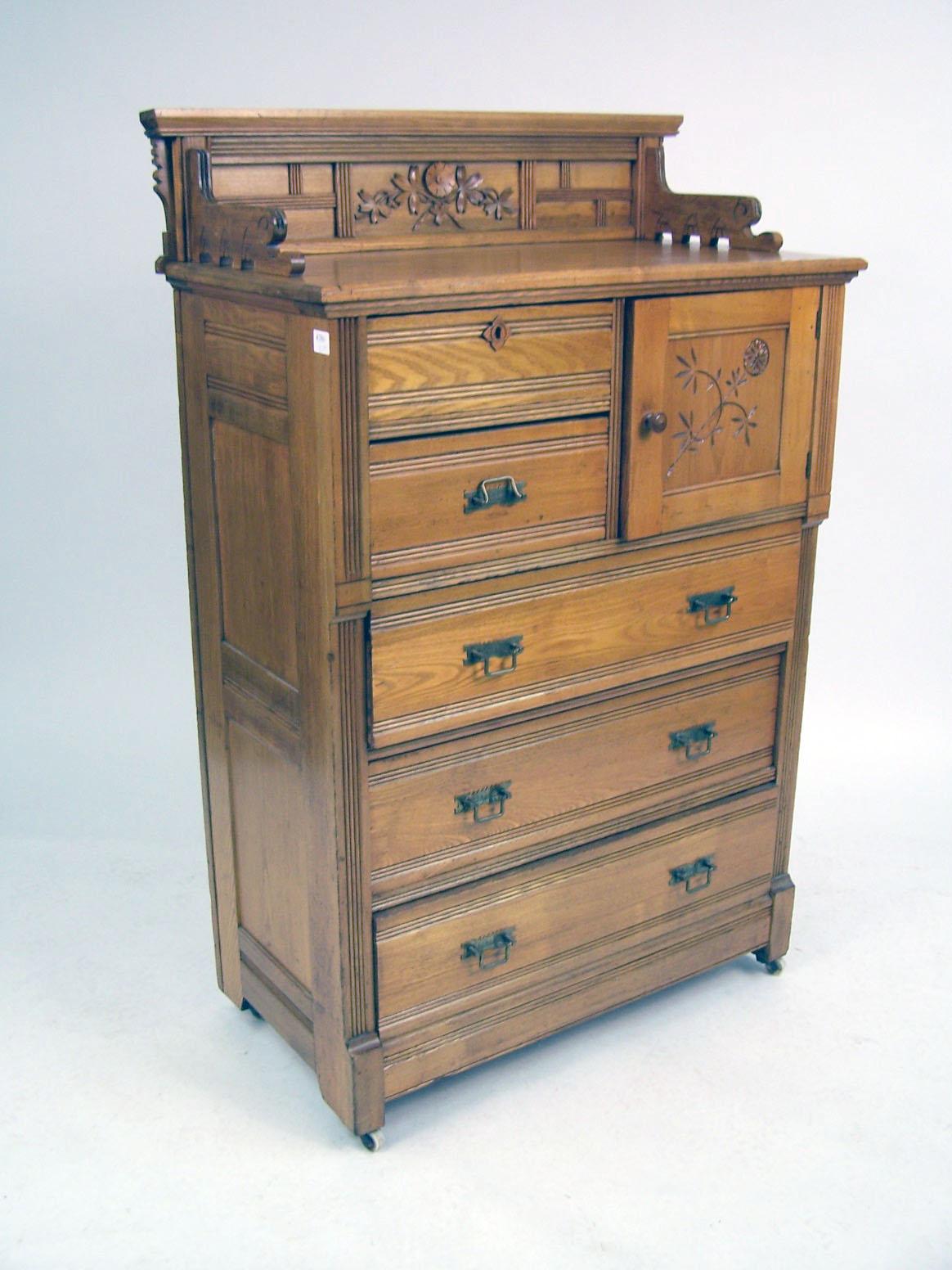 A VICTORIAN CARVED OAK TALL CHEST OF DRAWERS