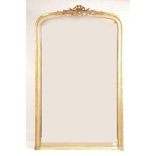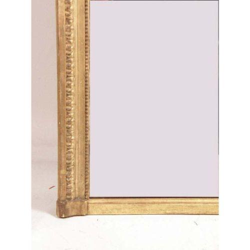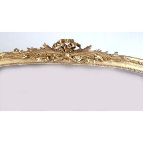A VICTORIAN GILTWOOD OVERMANTLE MIRROR<BR><BR>Of arched rectangular outlines, the cresting with a ribbon-tied sheth, the framed carved with leaf tips and beading, 7`h x 4`1"w